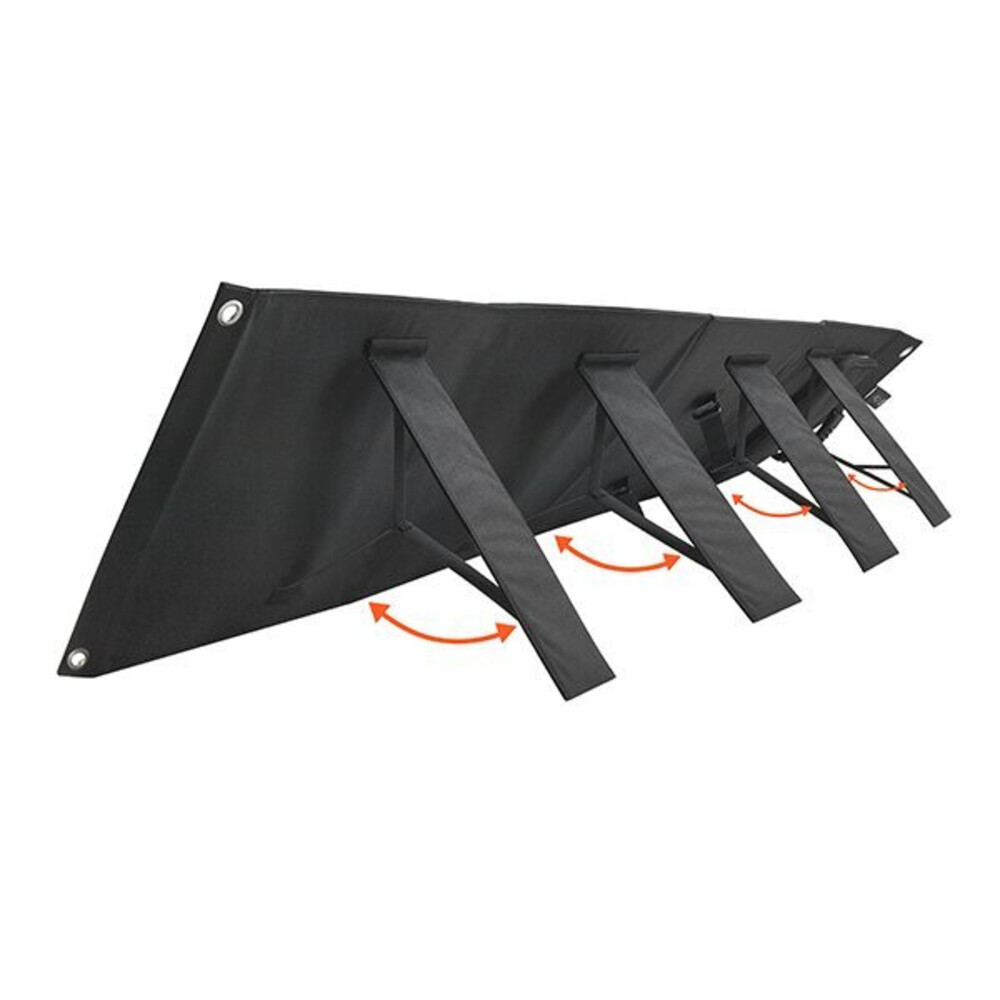 Kompakt, nagy hatásfokú monokristályos cellákat alkalmazó hordozható napelem, amely ideális megoldás szabadban történő energiaellátáshoz (kemping, lakóautó, hajó), valamint kisebb off-grid rendszerekhez és vészhelyzeti töltéshez. A panel névleges teljesítménye 400 Wp, masszív, mégis könnyen szállítható kivitelben készült, egyszerű és gyors telepítési lehetőséggel. A felhasználóbarát kialakítás (összecsukható táblák, kihajtható támasztékok és hordfül) megkönnyíti a mozgatást és a beállítást a napsütés optimális irányába.