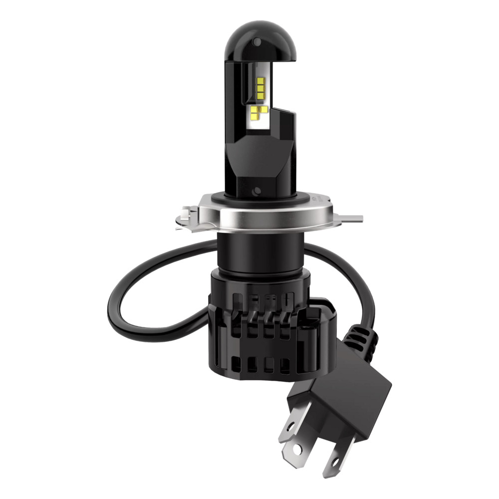 OSRAM NIGHT BREAKER: A NIGHT BREAKER H4 LED a motorbiciklikhez, az OSRAM első utcai jóváhagyású1) H4-LED csereizzója most már kapható. Az utcai jóváhagyású1) NIGHT BREAKER® H4-LED segítségével most fejlesztheted motorod tompított és távolsági fényszóróinak funkcióját a legmodernebb LED technológiára. Ezek a LED csereizzók alkalmasak a hagyományos H4 izzók és bázisok helyettesítésére. Modern és fényes fehér fényt kínálnak, akár 6000 Kelvin színhőmérsékletig, és lenyűgöznek akár 230%-kal nagyobb fényerővel2), míg a más úthasználók által tapasztalt fényvillanás az engedélyezett maximális értékek alatt marad, akár 50%-kal2). A standard izzókhoz, például halogén izzókhoz képest ezek a LED utólagos izzók akár 55%-kal kevesebb energiát fogyasztanak, és a LED-technológiának és a különösen fejlesztett vibrációálló tervezésnek köszönhetően, akár 5-ször hosszabb élettartammal3) büszkélkedhetnek. Most már helyettesítheted motorod izzóit az OSRAM forradalmi NIGHT BREAKER LED utólagos izzóival, és tapasztald meg az úttörő fényerőt, amely rendelkezik az úttal kapcsolatos jóváhagyással1). Továbbá, az OSRAM speciális garanciát kínál az összes NIGHT BREAKER LED utólagos izzóra2).