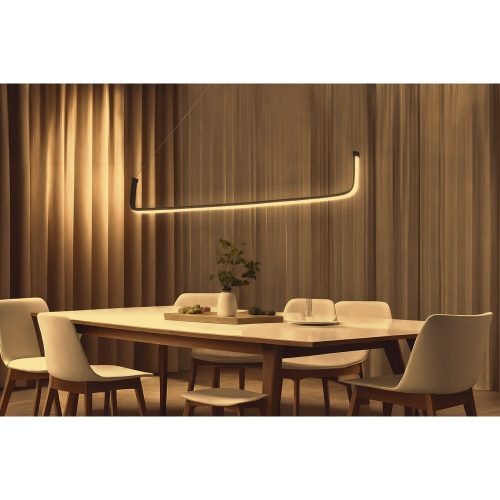 Ez a karcsú és modern dizájnnal készült csillár könnyedén ötvözi a kifinomultságot a kortárs stílussal. A merész fekete szín eleganciát kölcsönöz bármely helyiségnek, így tökéletes központi eleme lehet étkezőjének, nappalijának vagy előszobájának.