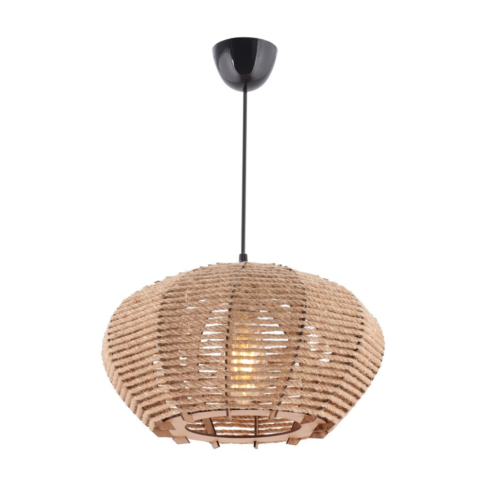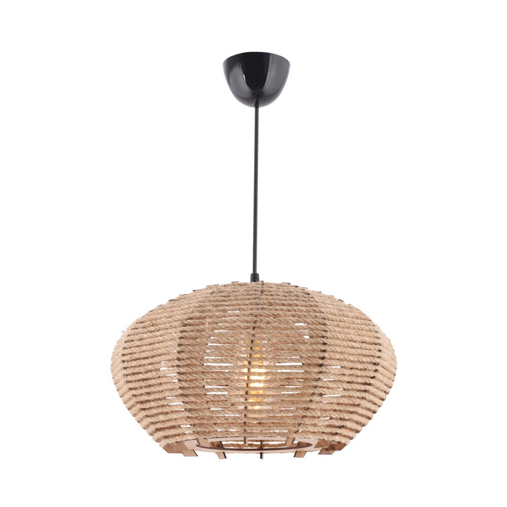 Alakítsa át életterét az elegancia és a báj paradicsomává lenyűgöző fa csillárunkkal. Ez a fából készült, juta sapkával díszített csillár rusztikus, mégis kifinomult vonzerőt sugároz, amely mindenkit magával ragad, aki belép otthonába.