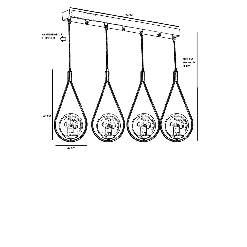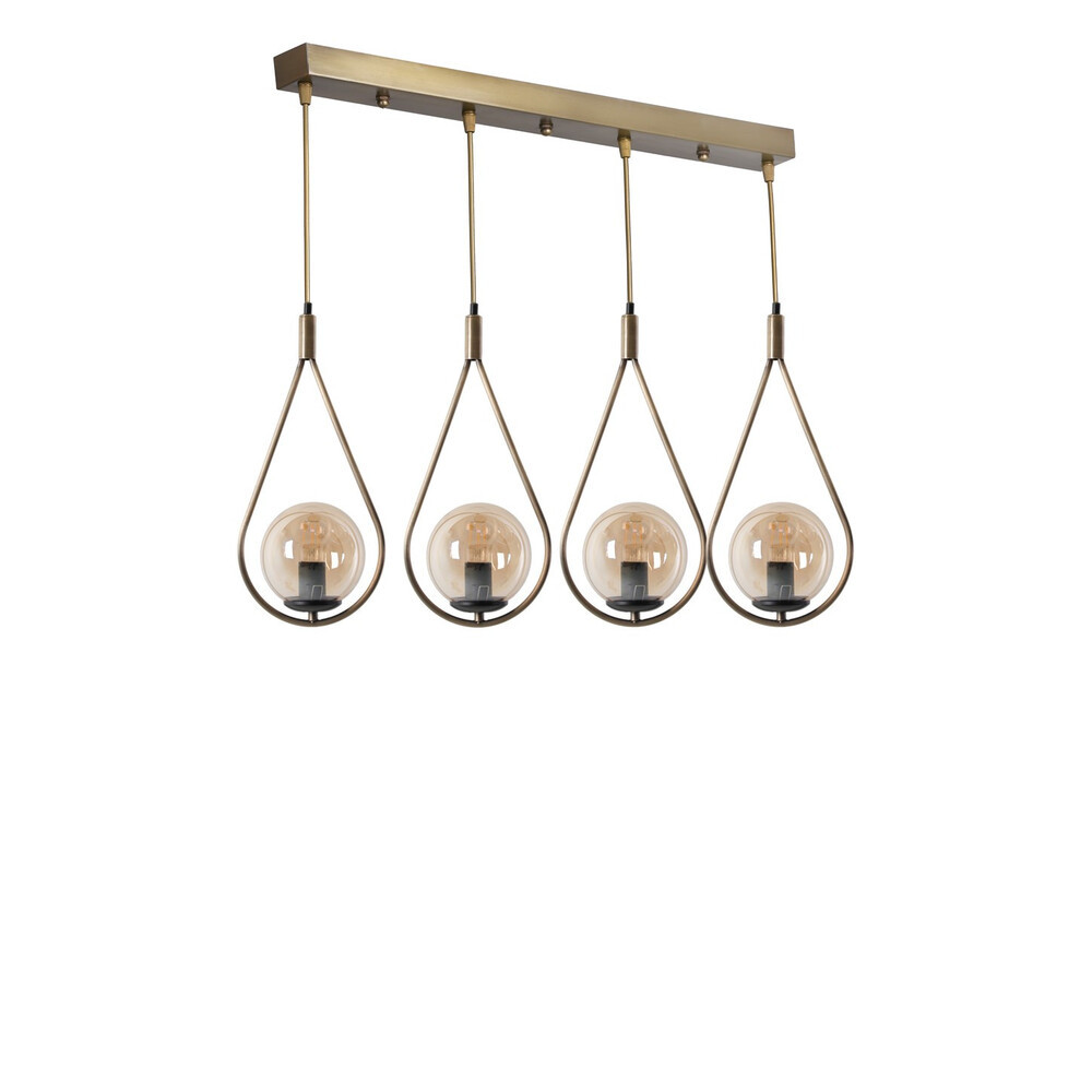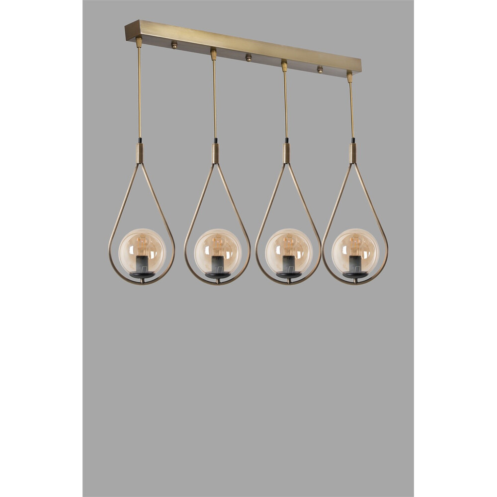 Opviq , 846STL2858 , Damla 4 Lü Sıralı Bal Camlı Eskitme Sarkıt , Réz Színű , Csillár , E27