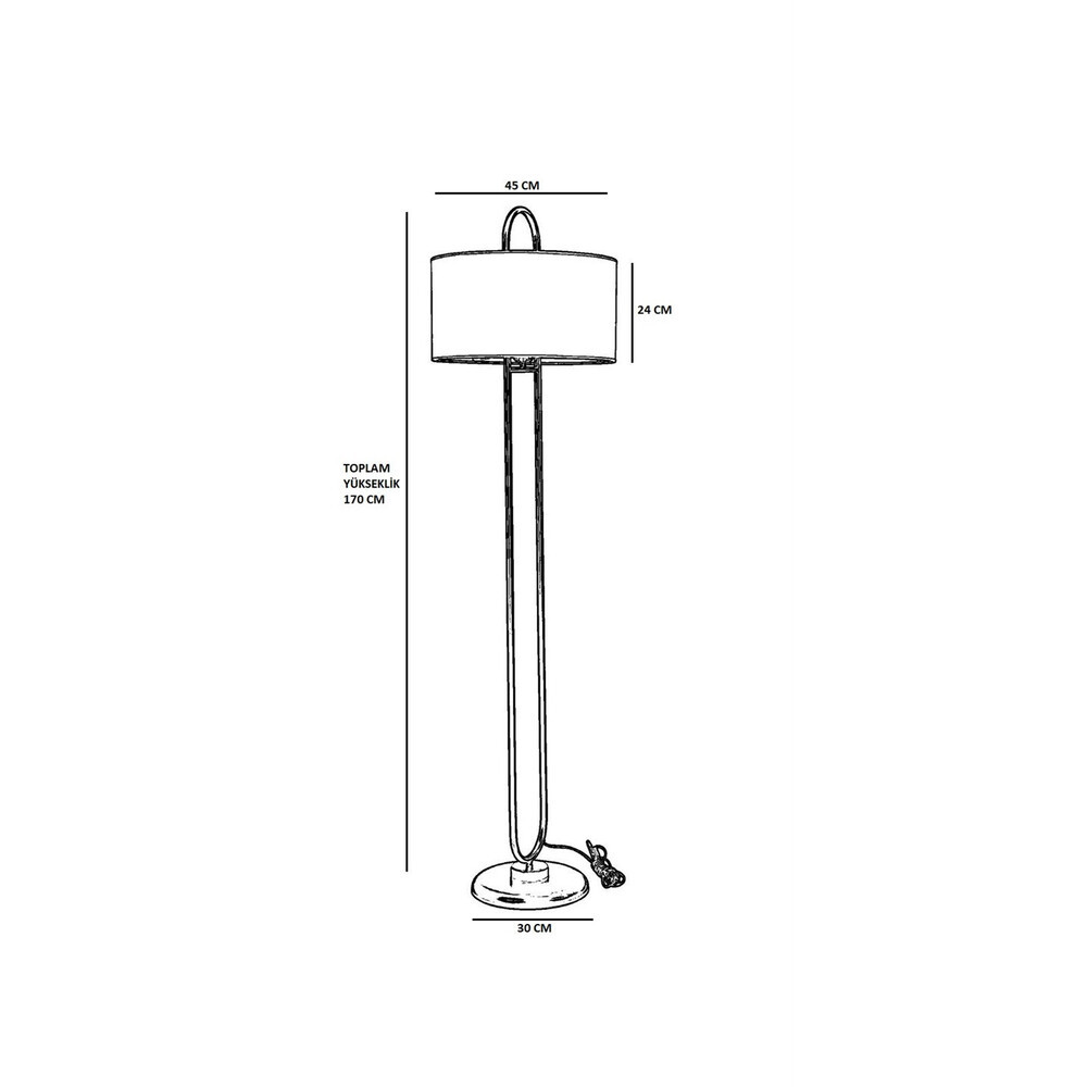 Ez az állólámpa 170 cm-es magasságával igazi statement darab, amely lenyűgözi vendégeit, és csodálattal tölti el őket. Karcsú és karcsú, 30 cm átmérőjű lábai stabilitást biztosítanak, és eleganciát kölcsönöznek a térnek. A 45 cm átmérőjű és 24 cm magas lámpaernyő egyenletesen szórja szét a fényt, hangulatos és hívogató környezetet teremtve.