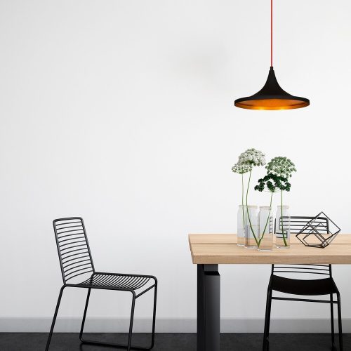 A masszív fémtesttel készült csillár kivételes tartóssággal és hosszú élettartammal büszkélkedhet. A karcsú fekete és piros színkombináció modern és stílusos hatást kölcsönöz a dekorációnak, míg a skandináv ihletésű design az egyszerűség és a minimalizmus érzetét kelti.