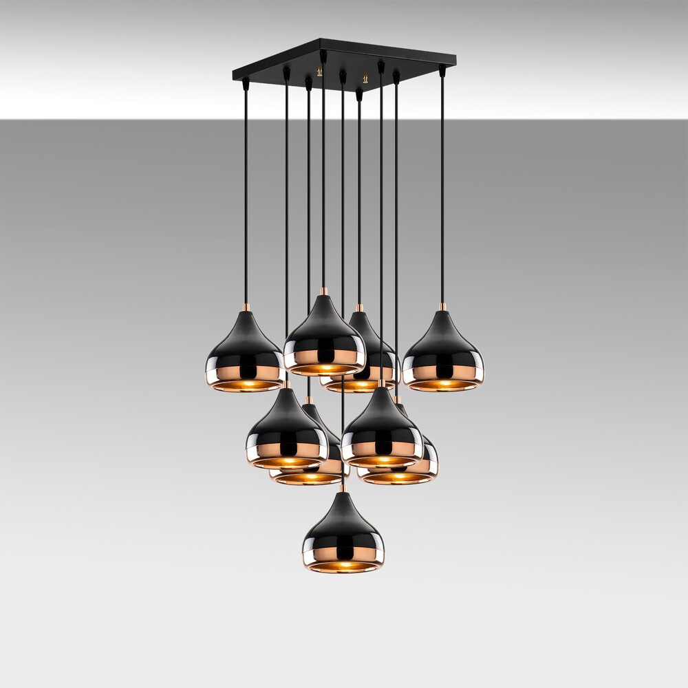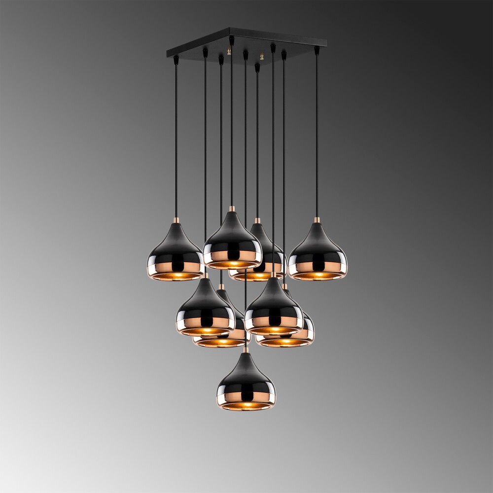 Bemutatjuk gyönyörű csillárunkat, egy remekművet, amely azonnal feldobja bármely helyiség hangulatát. A fémtesttel készült, lenyűgöző darab kifinomultságot és időtlen szépséget sugároz. Karcsú kialakítása a magával ragadó fekete színnel kombinálva olyan feltűnő kontrasztot teremt, amelytől vendégei elámulnak majd.