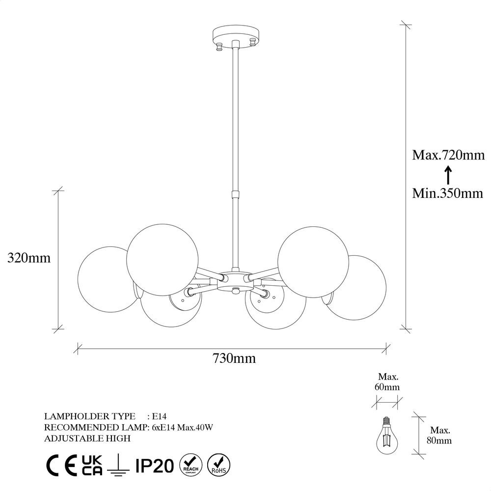 A 15 cm átmérőjű üvegkupak gyönyörűen szórja a fényt, meleg és hívogató légkört teremtve. A csillár állítható magassága lehetővé teszi, hogy a világítást tökéletesen a helyiségéhez igazítsa. Akár hangulatos és meghitt környezetet, akár fényes és vibráló hangulatot szeretne teremteni, ez a csillár mindenre megfelel.