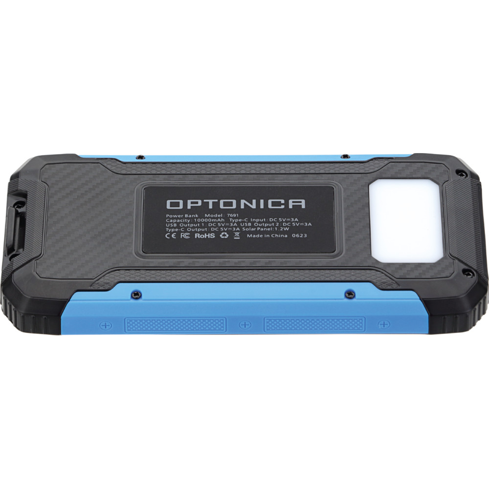 Power bank 10000mah 3.7v napelemes: 1.2w fekete+kék LED: 2w, fekete/kék, Optonica, 7691