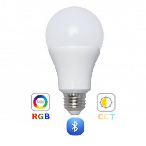 Állítható színes (RGB, red, green, blue) és fehér színárnylatú (CCT) led lámpa égő, mely E27 foglalatú, 9 Watt fogyasztású.