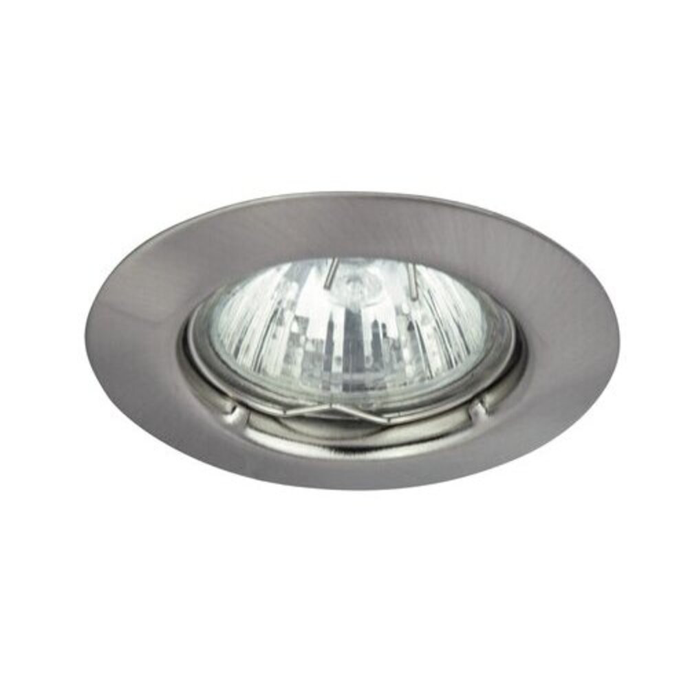 Gipszkarton álmennyezetbe és bútorlapba beépíthető, klasszikus megjelenésű spot lámpatest, szatin króm színben. A fix helyzetű fényforrás egyállású megvilágítást biztosít. A GU5.3-as foglalat kialakítása lehetővé teszi max. 50W teljesítményű halogén vagy LED fényforrás alkalmazását. LED fényforrással a spot lámpatest polisztirol díszlécbe is beépíthető. A beépítési felület kialakításához szükséges méretek megtalálhatóak a termék csomagolásában elhelyezett rajzos használati útmutatóban.