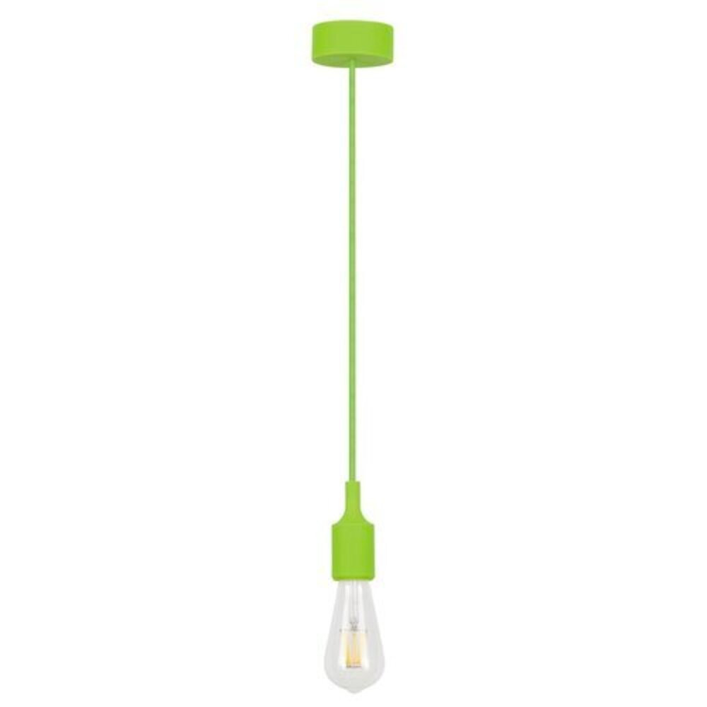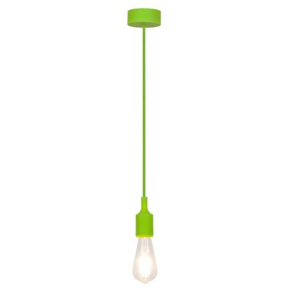 A Roxy indusztriális stílusú, zöld színű szilikon függeszték, lelógása 150 cm. A függeszték E-27-es foglalatú, max. 40W teljesítményű energiatakarékos fényforrással, így akár a különleges megjelenésű, ST58-as formájú, energiatakarékos filament LED izzóval is használható.