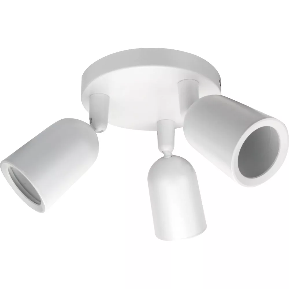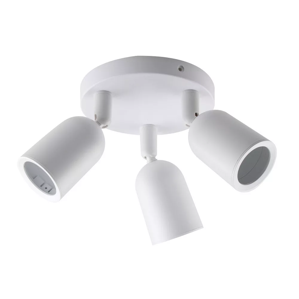 Reflektor lámpatest három darab GU10 foglalattal, fehér műanyag kivitelben. Kompakt, modern megjelenésű spotlámpa beltéri használatra, amely kiemelt vagy általános megvilágításra egyaránt alkalmas. A reflektorfejek irányíthatók, így könnyen beállítható a fény fókusza a kívánt területre. A készülék GU10 típusú izzókat fogad (LED és halogén kompatibilis); energiatakarékos LED izzók alkalmazását javasoljuk a hosszú élettartam és alacsony energiafogyasztás érdekében. Fehér műanyag burkolata esztétikus, könnyen illeszthető különböző belső terekbe, és felületre szerelhető mennyezetre vagy falra. Telepítése egyszerű, azonban a beszerelést és az elektromos csatlakoztatást mindig szakképzett villanyszerelő végezze el a gyártó műszaki előírásai szerint.