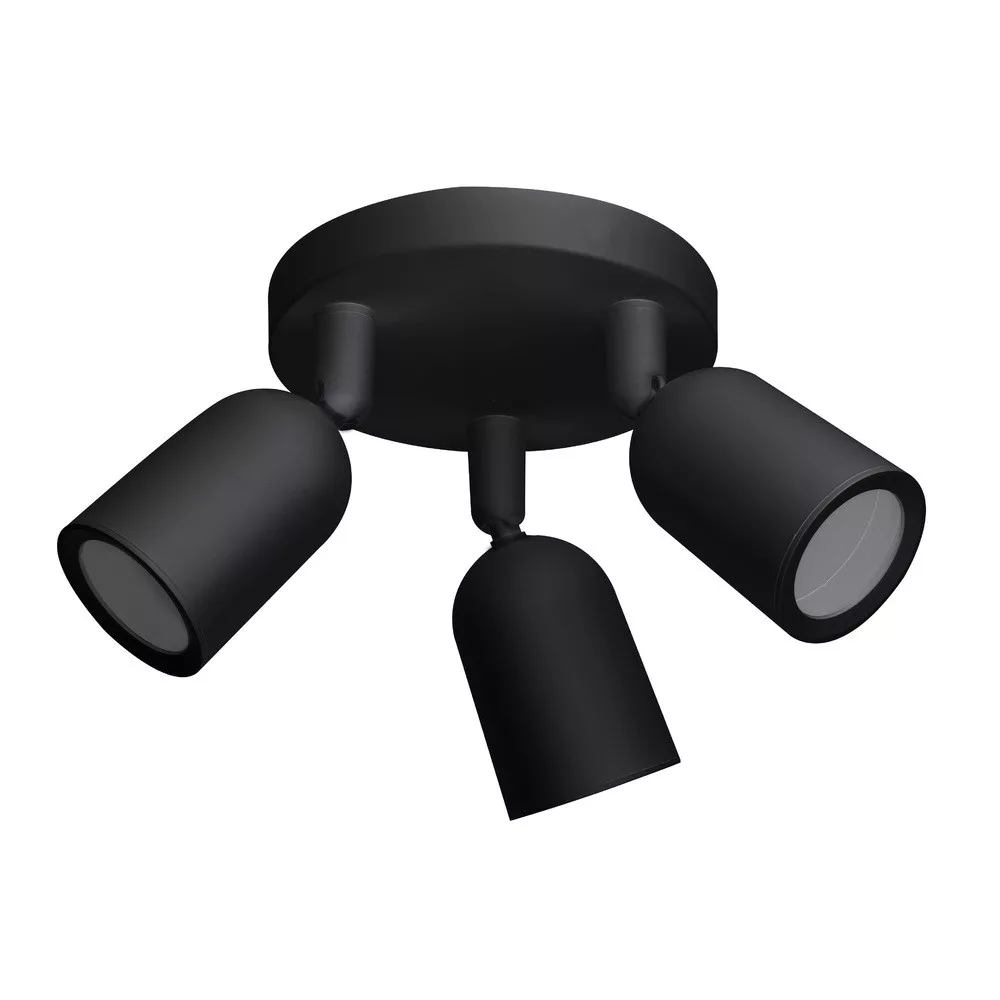 Szakszerű, kompakt spotlámpa három különálló GU10 foglalattal, amely lehetővé teszi egyedi fényelosztás és irányfények kialakítását. A könnyű, tartós műanyag ház modern, matt fekete felülettel rendelkezik, ami diszkrét megjelenést biztosít és jól illeszkedik kortárs lakberendezési stílusokhoz. A lámpatest GU10 foglalatai kompatibilisek LED és halogén izzókkal; energiahatékony LED izzók alkalmazását javasoljuk a hosszabb élettartam és alacsonyabb fogyasztás érdekében. Alkalmas általános és kiemelő világításra lakó- és kereskedelmi terekben (például konyha, nappali, előszoba, üzlethelyiségek), ahol irányított fényre van szükség. Szerelése egyszerű, karbantartása könnyű; a pontos villamos adatok és maximális teljesítményértékek ellenőrzését a gyártó műszaki dokumentációja alapján javasoljuk. Izzók nem tartozékai a terméknek.