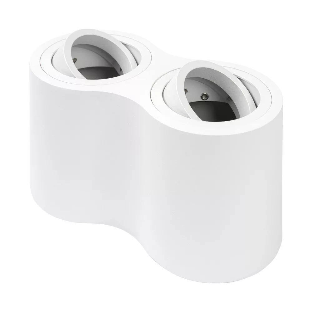 Kétfoglalatos spotlámpa GU10 foglalattal, Optonica gyártmány, elegáns fehér kivitelben. Letisztult, modern megjelenés, amely könnyen illeszkedik lakó- és üzleti terekbe (nappali, konyha, előszoba, közlekedők, üzlethelyiségek). A GU10 foglalat kompatibilis LED és halogén izzókkal, így LED izzókkal energiatakarékos, hosszú élettartamú világítás hozható létre. A két különálló fényforrás lehetőséget ad általános és részlegesen irányított megvilágítás kialakítására. Kompakt, egyszerűen felszerelhető kivitel mennyezetre vagy falra; dimmerrel kombinálva hangulati fények is beállíthatók, amennyiben a választott izzók és az elektromos rendszer kompatibilisek.
