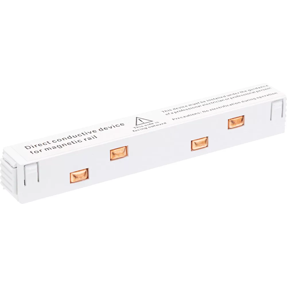 Optonica márkájú toldó csatlakozó mágneses sínrendszerekhez, 48V névleges feszültségre tervezve. Fehér kivitelben készült, esztétikus befejezést biztosít a látható sínszakaszok között; ideális beltéri lámpatestek és világító elemek gyors csatlakoztatásához. Kompakt kialakítása lehetővé teszi a sínprofilok pontos illeszkedését, míg a korrózióálló érintkezők stabil és megbízható elektromos kapcsolatot nyújtanak. Egyszerű, gyors telepítés szerszámok nélkül vagy minimális szereléssel, a rendszer folyamatos áramellátásának megtartásával. Alkalmas 48V-os mágneses sínrendszer bővítésére, átvezetésére és helyi módosításaira, továbbá tiszta fehér felülete jól illeszkedik modern belsőépítészeti megoldásokhoz.