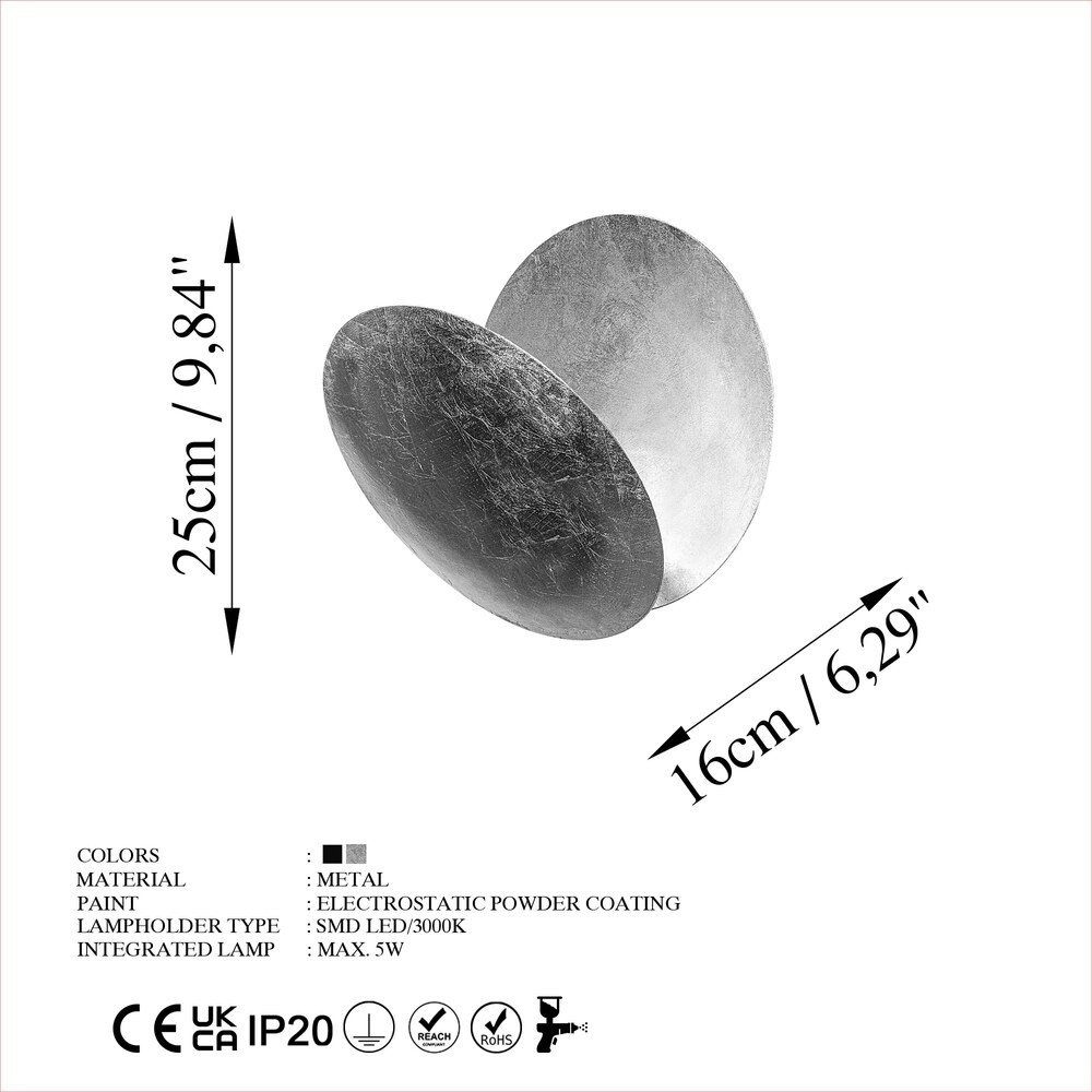 Stílusos ezüst fali lámpa, fém ház, 25 x 25 x 16 cm | SMD LED 5W 3000K | IP20 besorolású | Tökéletes modern lakberendezéshez, nappalihoz, hálószobához és irodahelyiségekhez, elegáns és funkcionális világítási megoldásokhoz