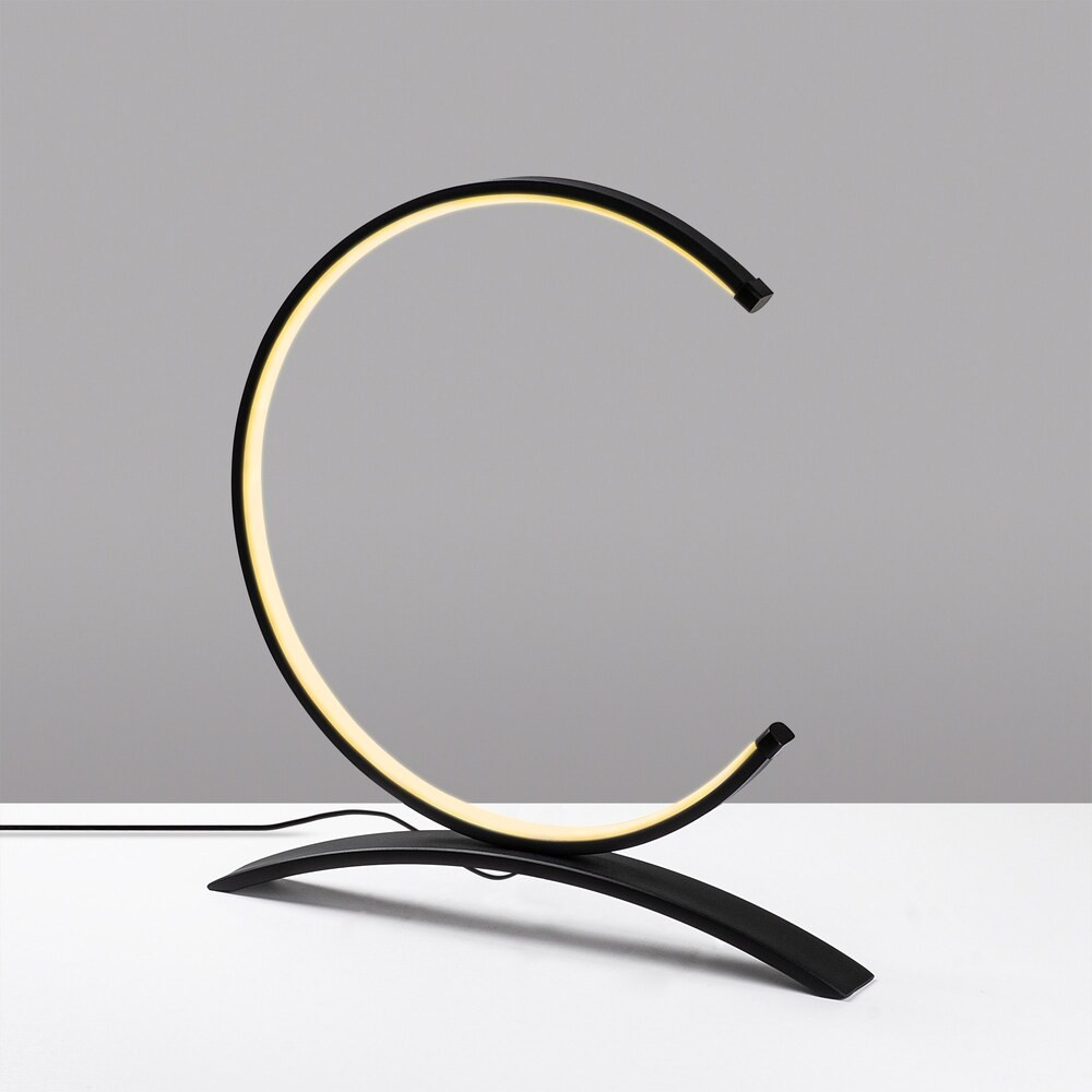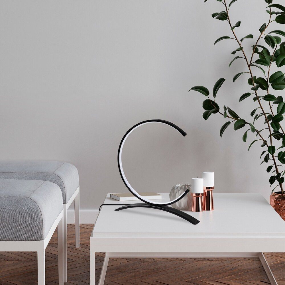 Stílusos fekete asztali lámpa fém házzal, 35 cm szélesség, 34 cm magasság | 12W-os LED-aljzat, 3000K meleg fény | 200 cm-es kábel, be-/kikapcsoló | Tökéletes modern lakberendezéshez és irodai helyiségekhez