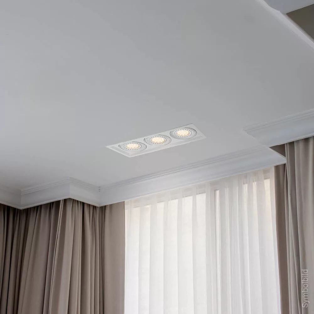 Négyzet alakú, beépíthető keret három AR111 típusú spotlámpa számára, Optonica márkájú, elegáns fehér kivitelben. Masszív, esztétikus ház, amely diszkrét megjelenést biztosít modern belső terekben; a három különálló lámpatest állítható, így könnyen irányítható a fény a kívánt területekre. A megoldás ideális lakások, bemutatótermek, üzlethelyiségek és közösségi terek általános vagy kiemelő világításához. Kompatibilis AR111 típusú reflektorokkal, beleértve az energiahatékony LED változatokat is; alacsony feszültségű AR111 esetén a megfelelő trafó alkalmazása szükséges. Egyszerű beépítés és karbantartás, strapabíró felületkezelés a hosszú élettartam érdekében. Modern, rugalmas fényképzésre tervezett megoldás, amely kombinálja a funkcionalitást és az esztétikát.