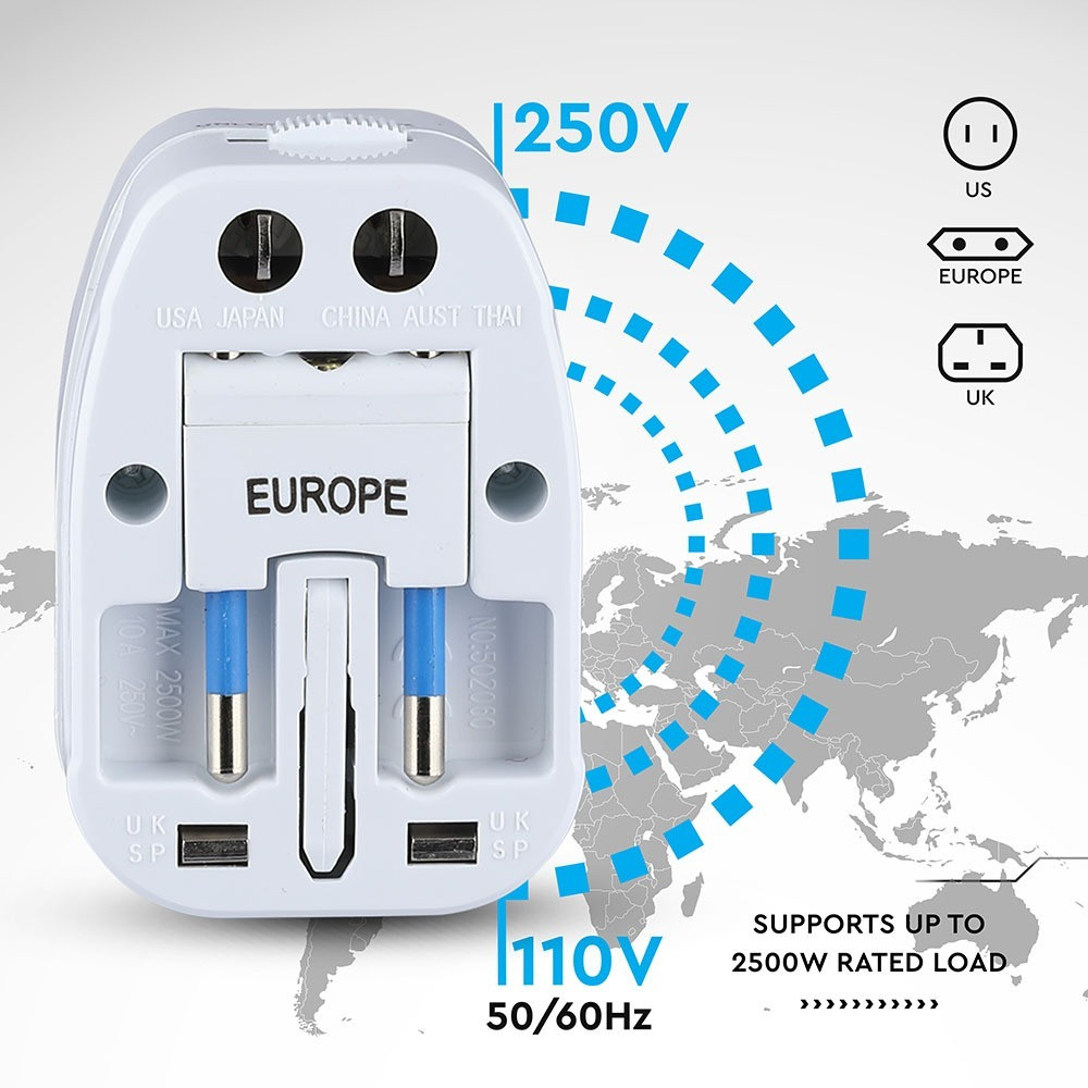 Univerzális adapter túlterelésvédelem nélkül, fehér, V-TAC, 8705