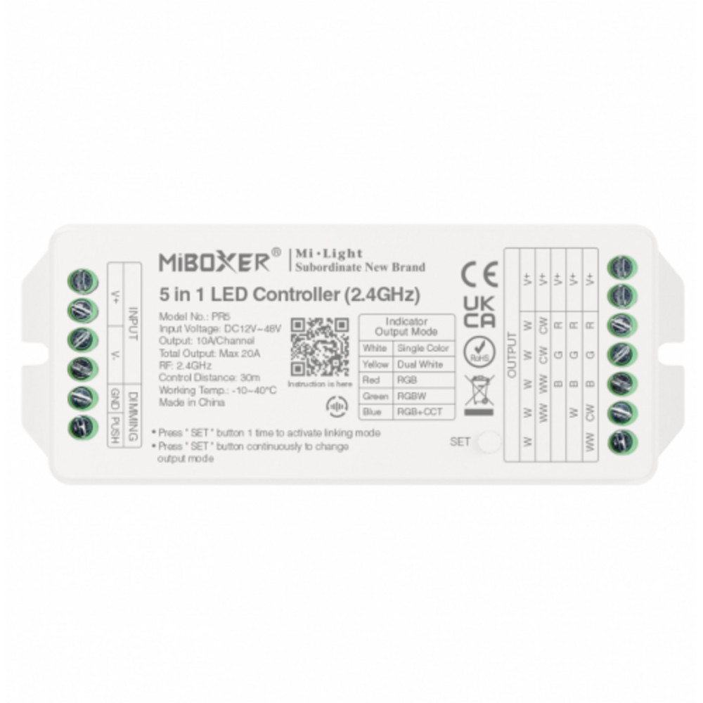 Univerzális csoport (zóna) vezérlő , 5in1 , Monokróm /CCT /RGB /RGBW /RGB-CCT , dimmelhető , group control , SMART , Max 20A , RF , Miboxer (Mi-Light) , PR5