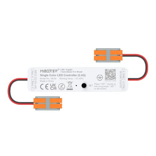 A MiBoxer MLR2 Mini LED vezérlő ideális megoldás egyszínű LED szalagok egyszerű és hatékony vezérlésére. Kompakt méretének köszönhetően könnyedén elhelyezhető szűk helyeken is, így nemcsak praktikus, hanem esztétikus választás bármilyen világítási projekthez.