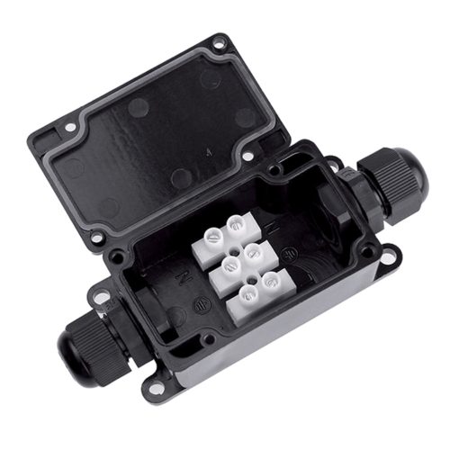A WATERPROOF TERMINAL BOX 10A IP65 egy ipari alkalmazásra tervezett, vízálló csatlakozó doboz, amely maximálisan 10 amperes terhelést bír el. Az IP65 besorolás biztosítja, hogy az eszköz por ellen védett és fröccsenő víz hatásával szemben is ellenálló, így számos külső és belső alkalmazásban használható, például épületek villamos hálózatainál vagy ipari automatizálási rendszereknél.