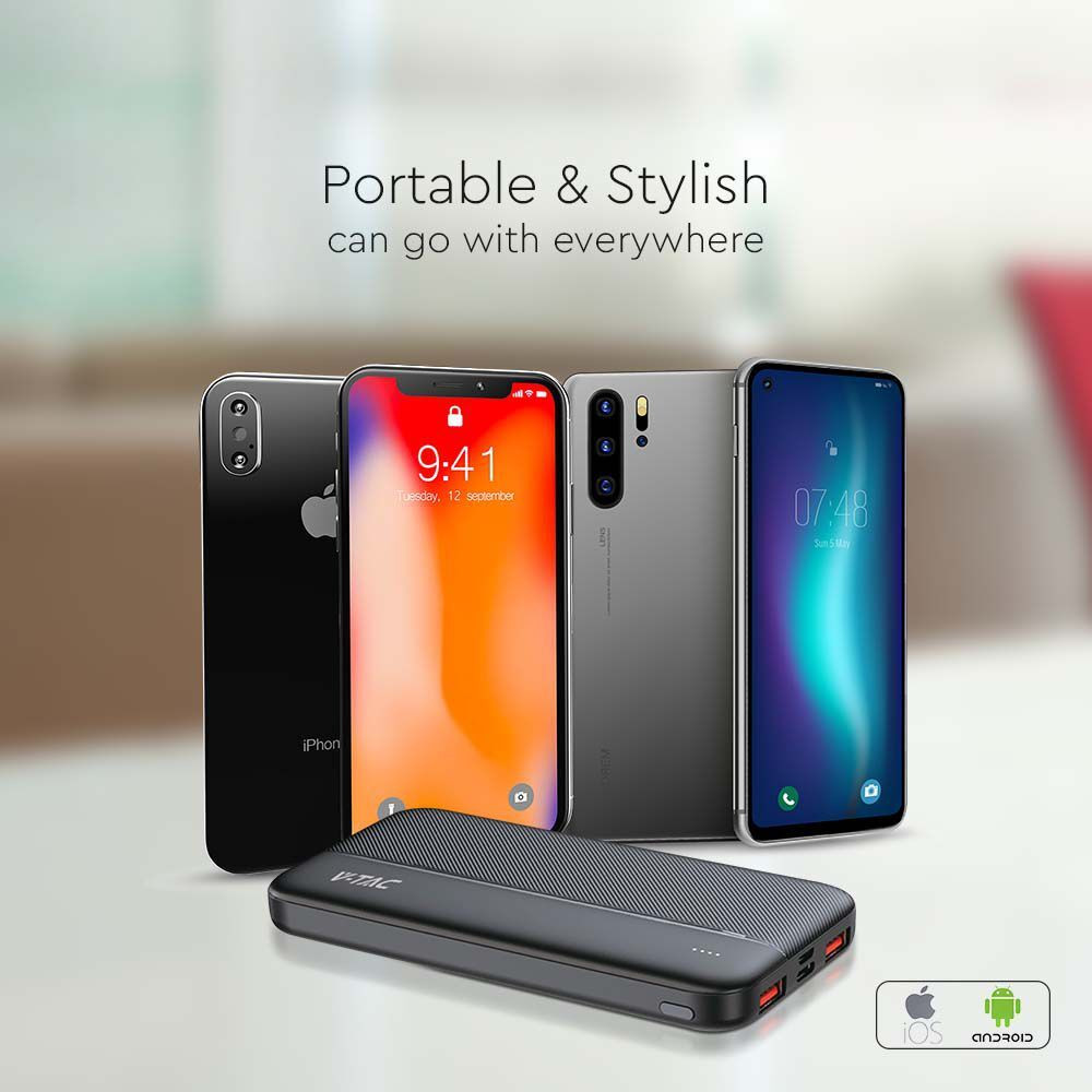 Hordozható gyorsan töltő power bank, 22,5w, fekete, V-TAC, 7831