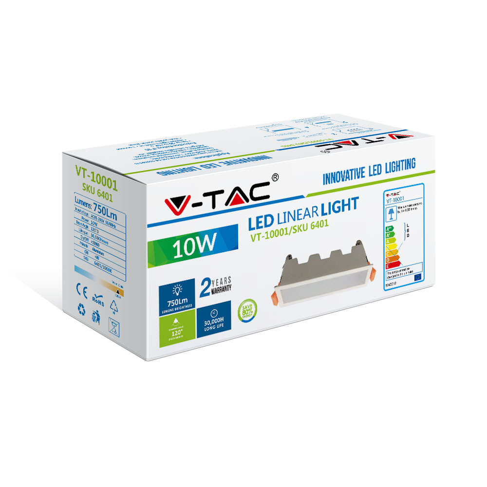 LED mini panel téglalap alakú, süllyesztett, 10w, 3000K, meleg fehér, 750lm, 120°, fehér, CRI>80, V-TAC, 6401
