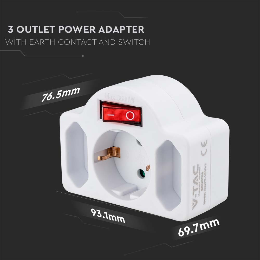 Kapcsolóval ellátott adapterek, V-TAC, 8788