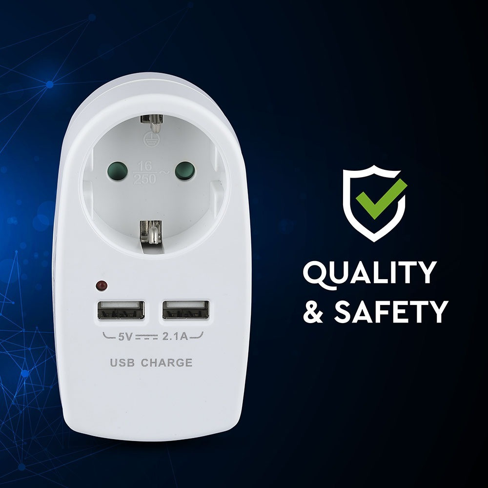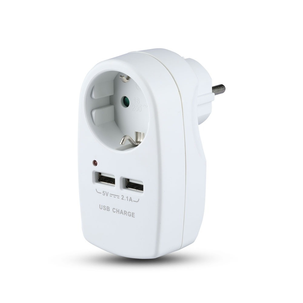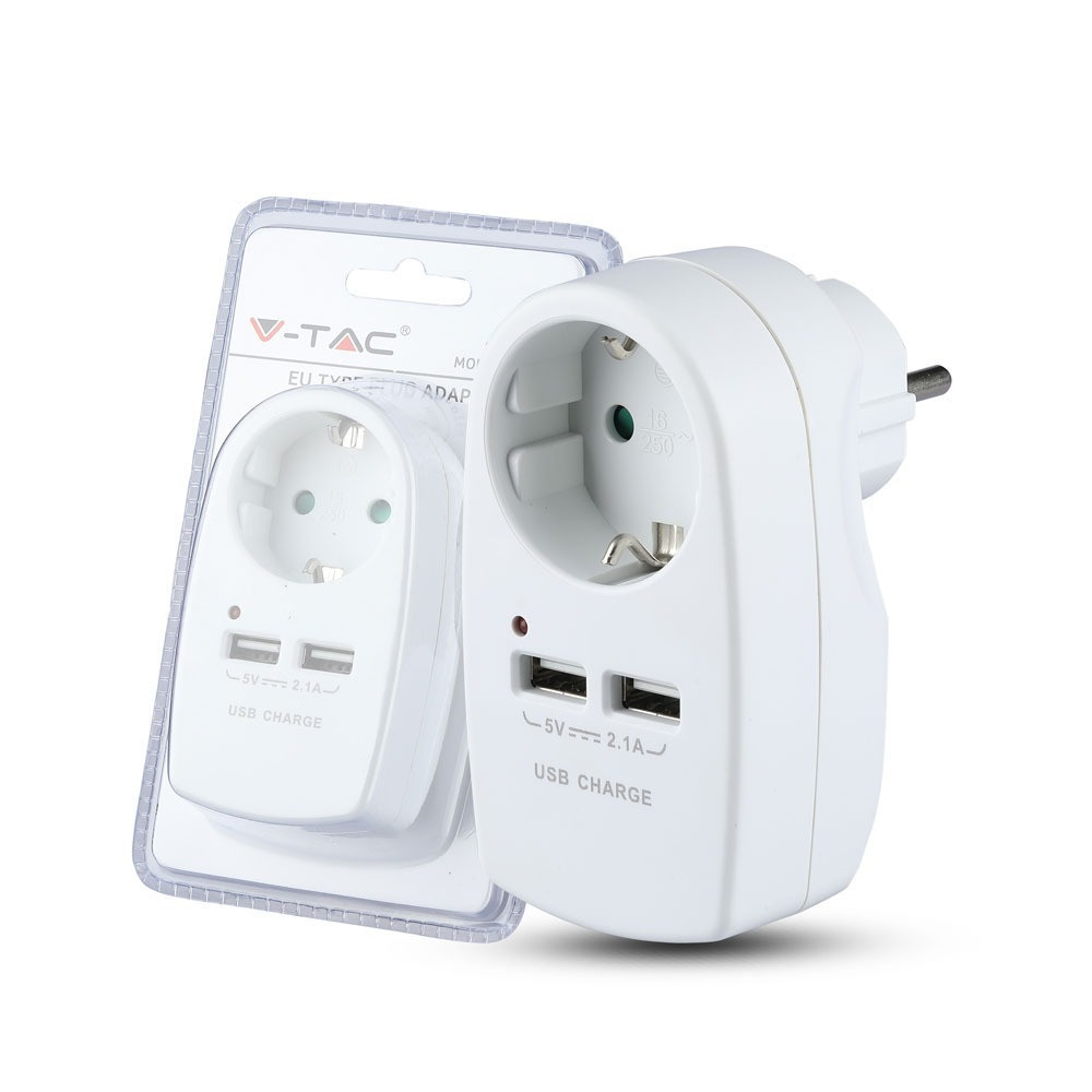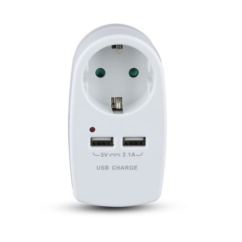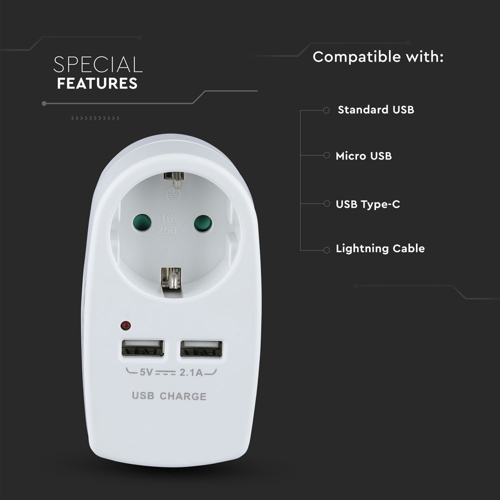 VT-1044 Eu Típusú Dugóadapter Földelő Érintkezővel És Töltőcsatlakozóval - Fehér