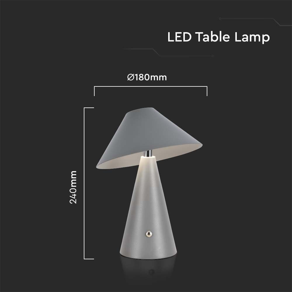 Újratölthető asztali design lámpa, 3w, CCT, 200lm, 120°, szürke, dimmelhető, V-TAC, 7949