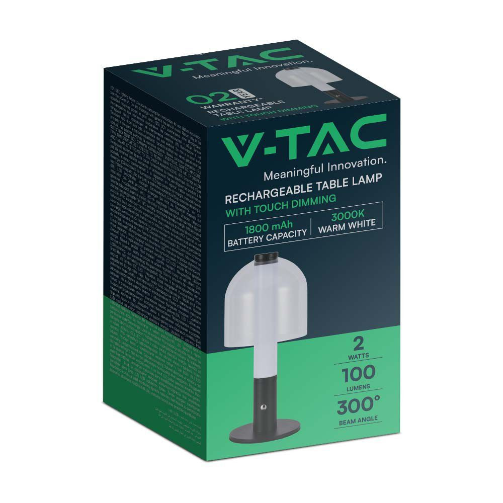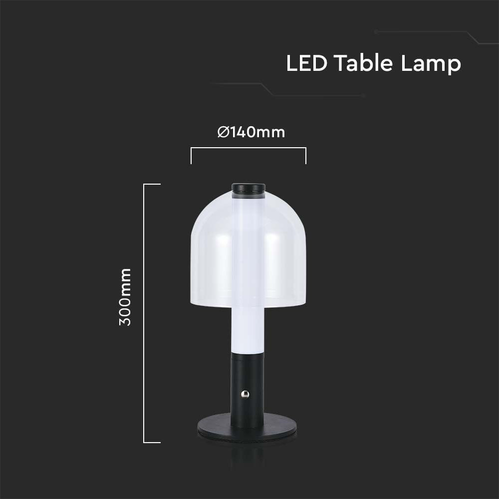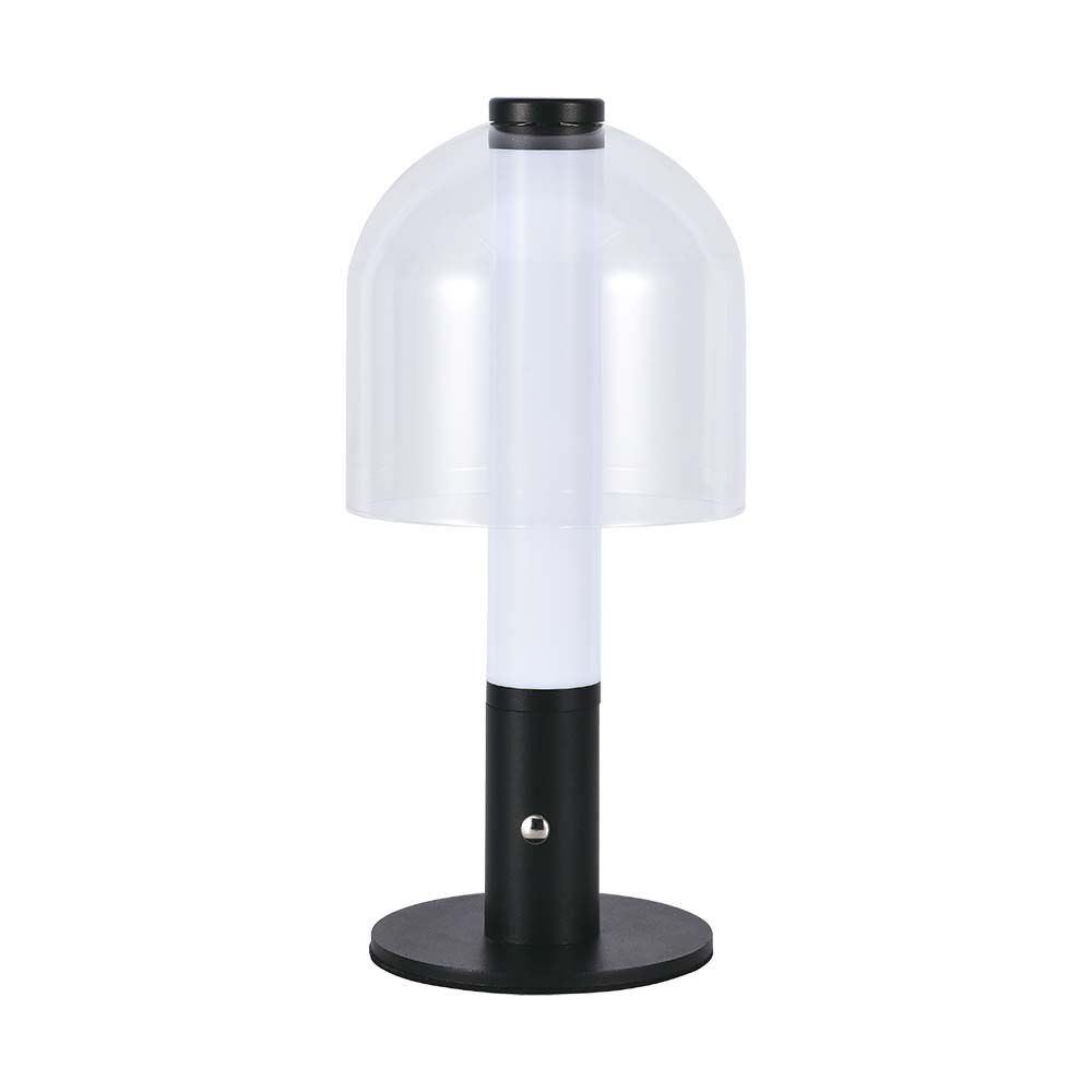 Újratölthető asztali design lámpa, 2w, CCT, 100lm, 300°, fekete, átlátszó, dimmelhető, V-TAC, 7988