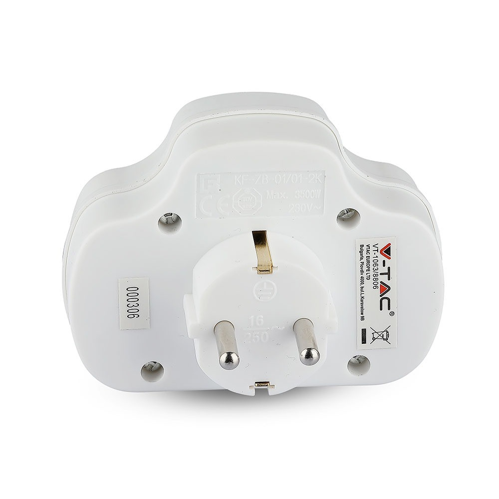 Kapcsolóval ellátott adapterek, fehér, V-TAC, 8806