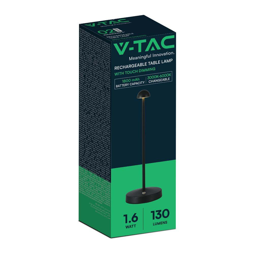 Újratölthető asztali lámpa, 1,6w, CCT, 130lm, 120°, fekete, dimmelhető, V-TAC, 10328