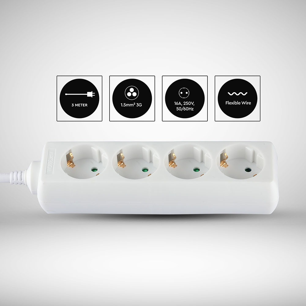 VT-1104-3 4 Pólusú Aljzat (3G1.5mm2 X 3M) - Fehér