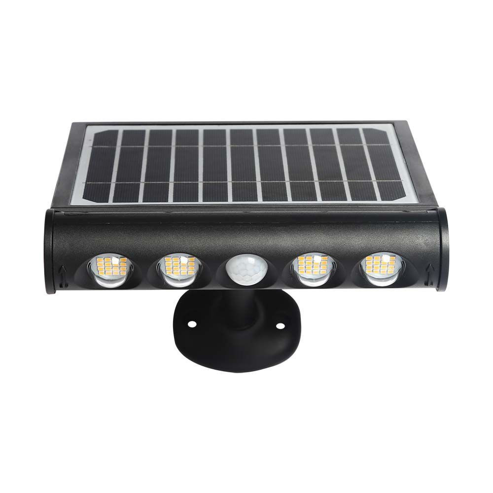 Szolár LED fali lámpa mozgásérzékelővel, 4000K, természetes fehér, 950lm, 120°, fekete, IP65, V-TAC, 6849