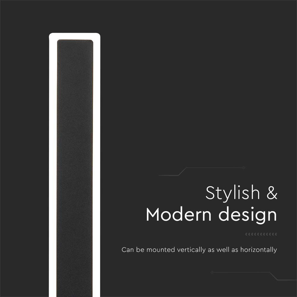 Kültéri LED fali lámpa modern, 17w, 4000K, természetes fehér, 2330lm, 360°, fekete, CRI>90, IP65, V-TAC, 6831