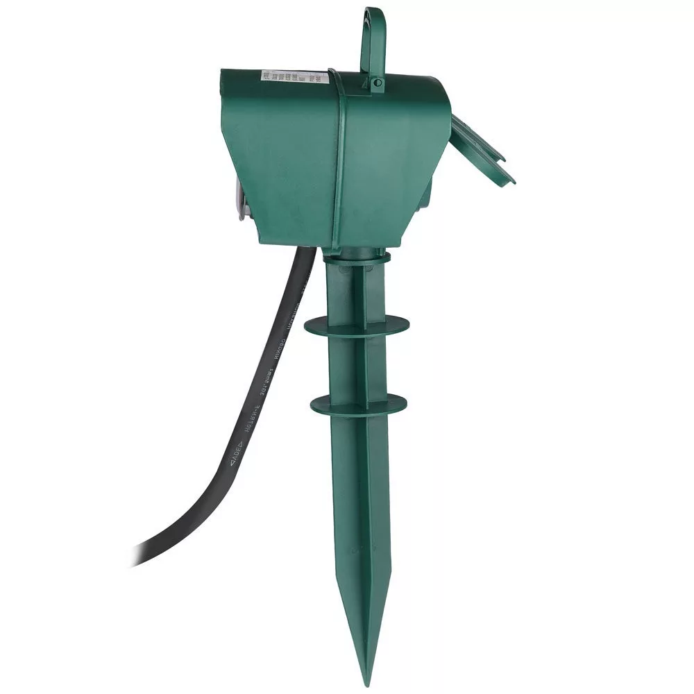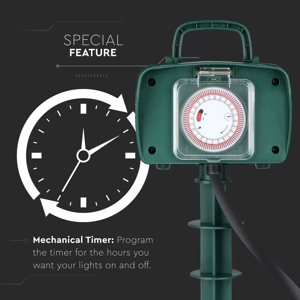 Leszúrható kerti elosztó 2 aljzattal, zöld, IP44, V-TAC, 8811
