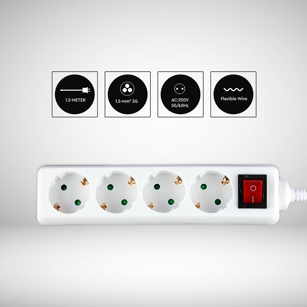 Bemutatjuk a VT-1114-2 4 pólusú kapcsolós aljzatot, egy megbízható és sokoldalú elosztót, amelyet az Ön energiaigényeire terveztek. Masszív felépítésének köszönhetően ez az elosztó három 1,5 mm²-es aljzattal és 1,5 méteres kábellel rendelkezik, így ideális otthoni vagy irodai használatra. A ház kiváló minőségű PP-ből és rézből készült, ami tartósságot és hosszú élettartamot biztosít. Elegáns fehér kivitelének köszönhetően zökkenőmentesen integrálható bármilyen dekorációba. Ez a modell váltakozó árammal (250V, 50/60Hz) működik, 16 A bemeneti árammal, és akár 3680 watt/méter névleges terhelést is biztosít. IP20 besorolásának köszönhetően tökéletes beltéri használatra, mivel védelmet nyújt a 12,5 mm-nél nagyobb szilárd tárgyak ellen. A VT-1114-2 kompakt méretei: 178 mm széles, 45 mm hosszú és 40 mm magas, így könnyen elhelyezhető különböző környezetekben. Energiatakarékos, úgy tervezték, hogy energiát takarítson meg a teljesítmény feláldozása nélkül, és lehetővé teszi a be-/kikapcsolást a hatékony használat szabályozása érdekében. Ezenkívül ezt a hosszabbító aljzatot a felhasználói kényelmet szem előtt tartva tervezték, dobozonként 40 darabot, raklaponként pedig összesen 1000 darabot tartalmaz, így tökéletes nagy tételben történő megrendelésekhez. Tapasztalja meg a funkcionalitás és a stílus tökéletes keverékét a VT-1114-2 4 állású kapcsolós aljzattal.