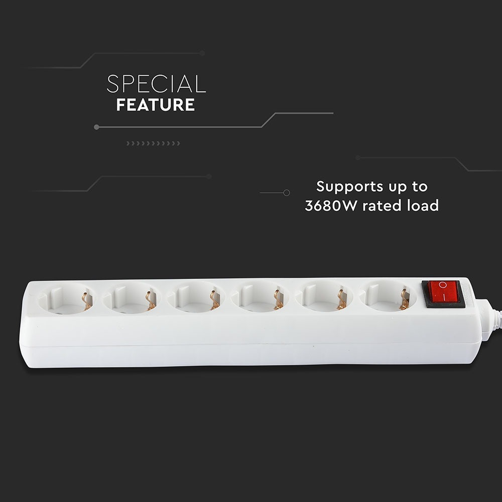 VT-1116-2 6 Pólusú Csatlakozóaljzat Kapcsolóval (3G1.5mm2 X 1.5M) - Fehér