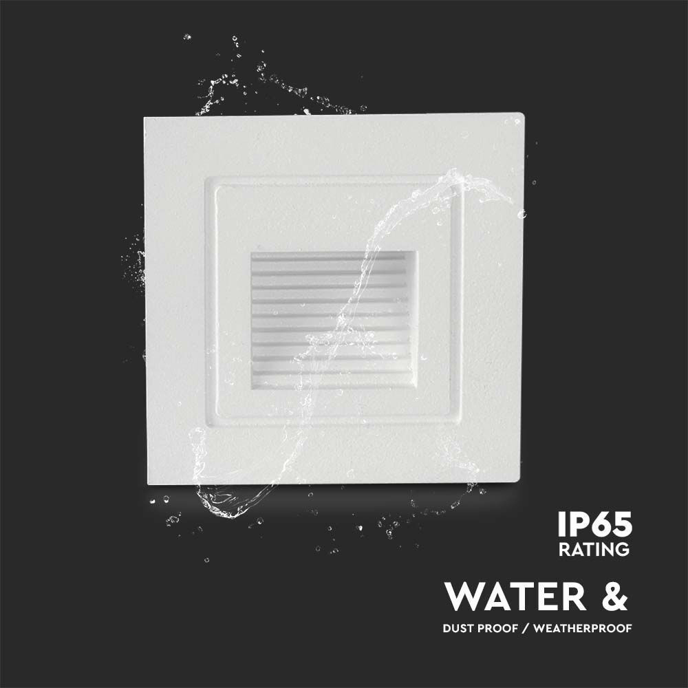 LED fali lámpa lépcsővilágító négyzet alakú, 3w, 3000K, meleg fehér, 180lm, 270°, fehér, CRI>80, IP65, V-TAC, 10376