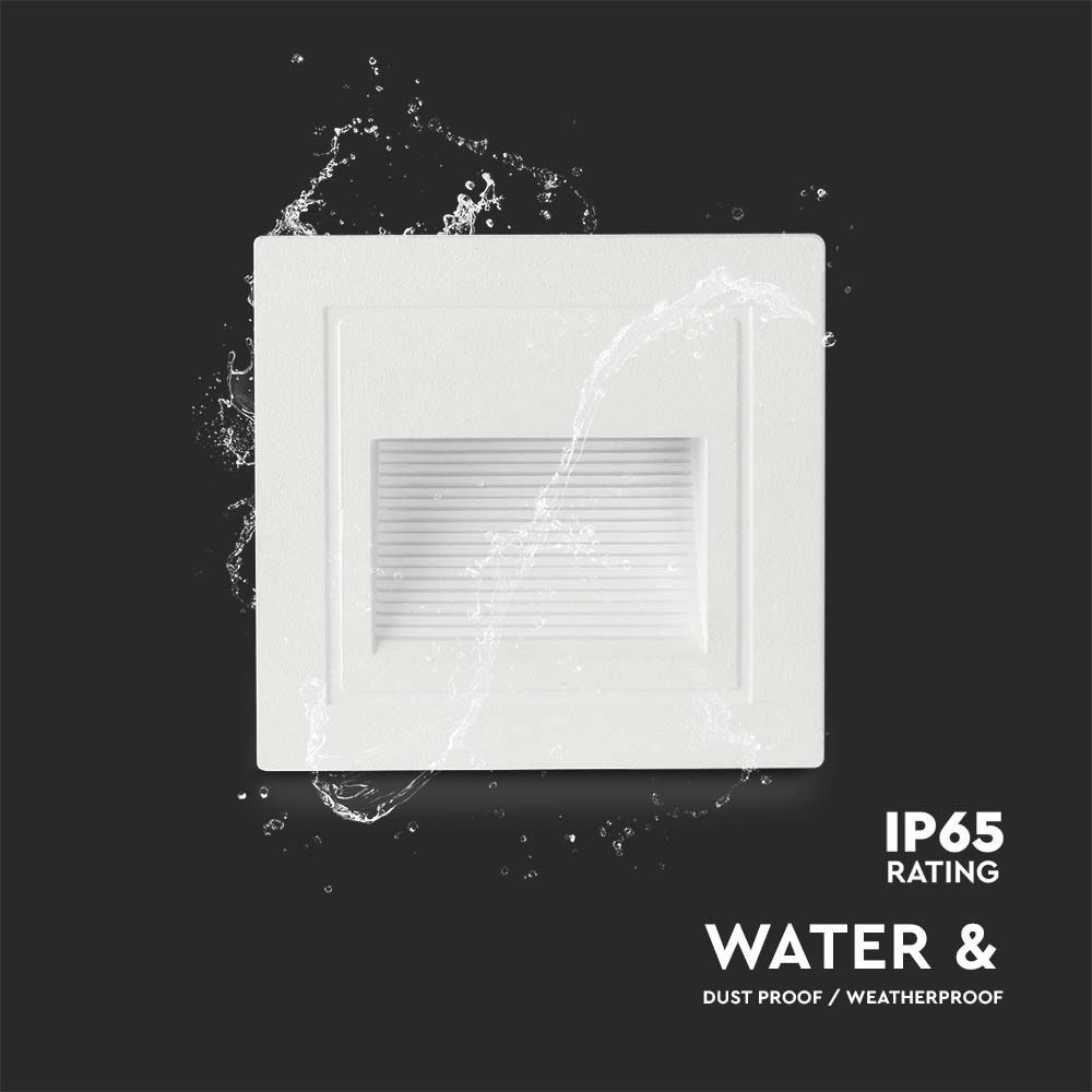 LED fali lámpa lépcsővilágító négyzet alakú, 5w, 3000K, meleg fehér, 380lm, 270°, fehér, CRI>80, IP65, V-TAC, 10377