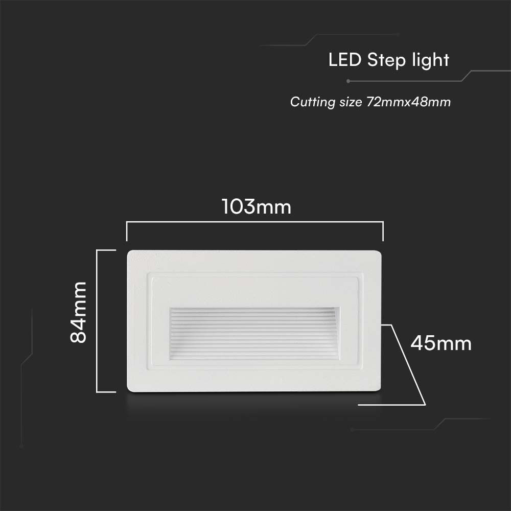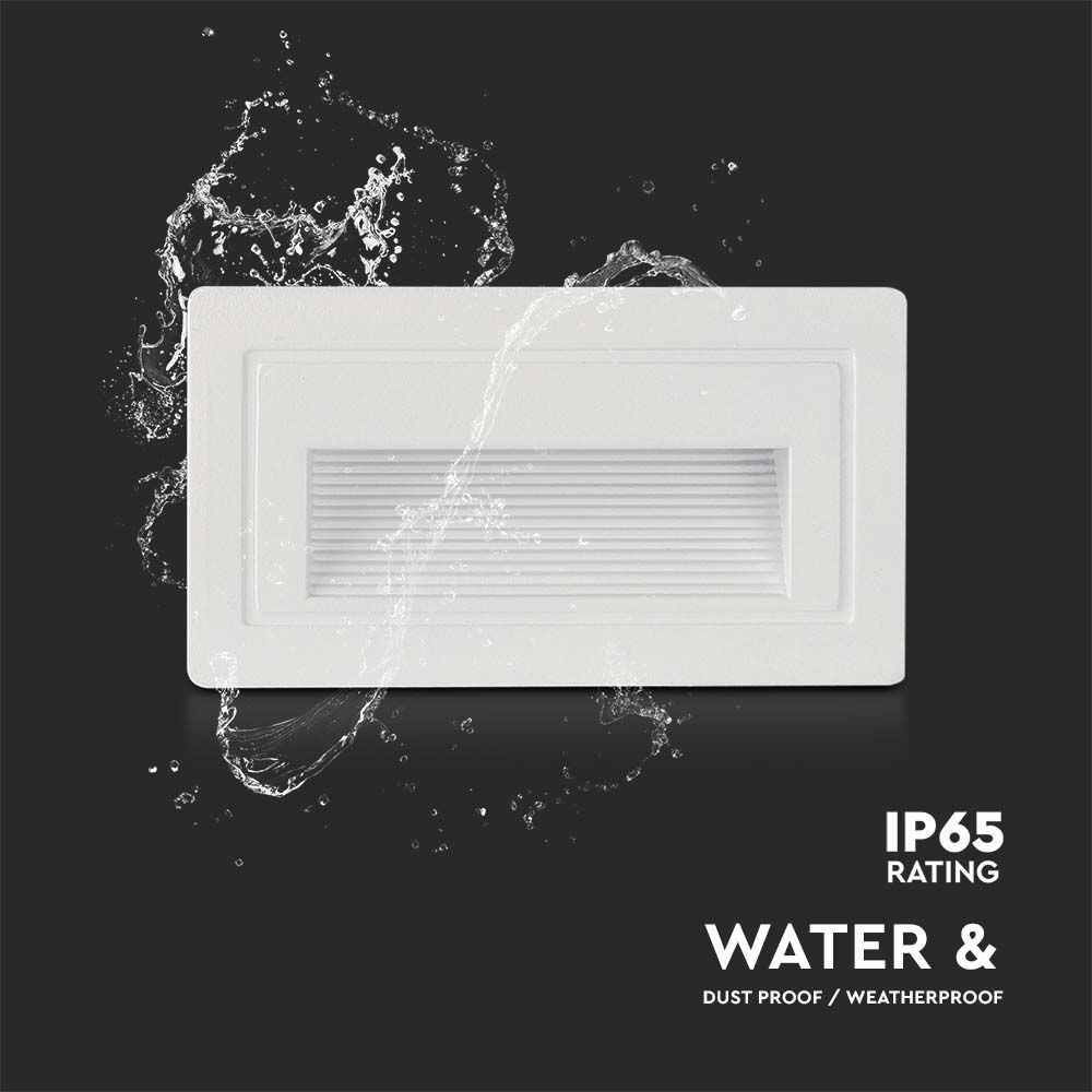 LED fali lámpa lépcsővilágító téglalap alakú, 3w, 3000K, meleg fehér, 180lm, 270°, fehér, CRI>80, IP65, V-TAC, 10378