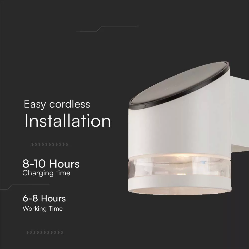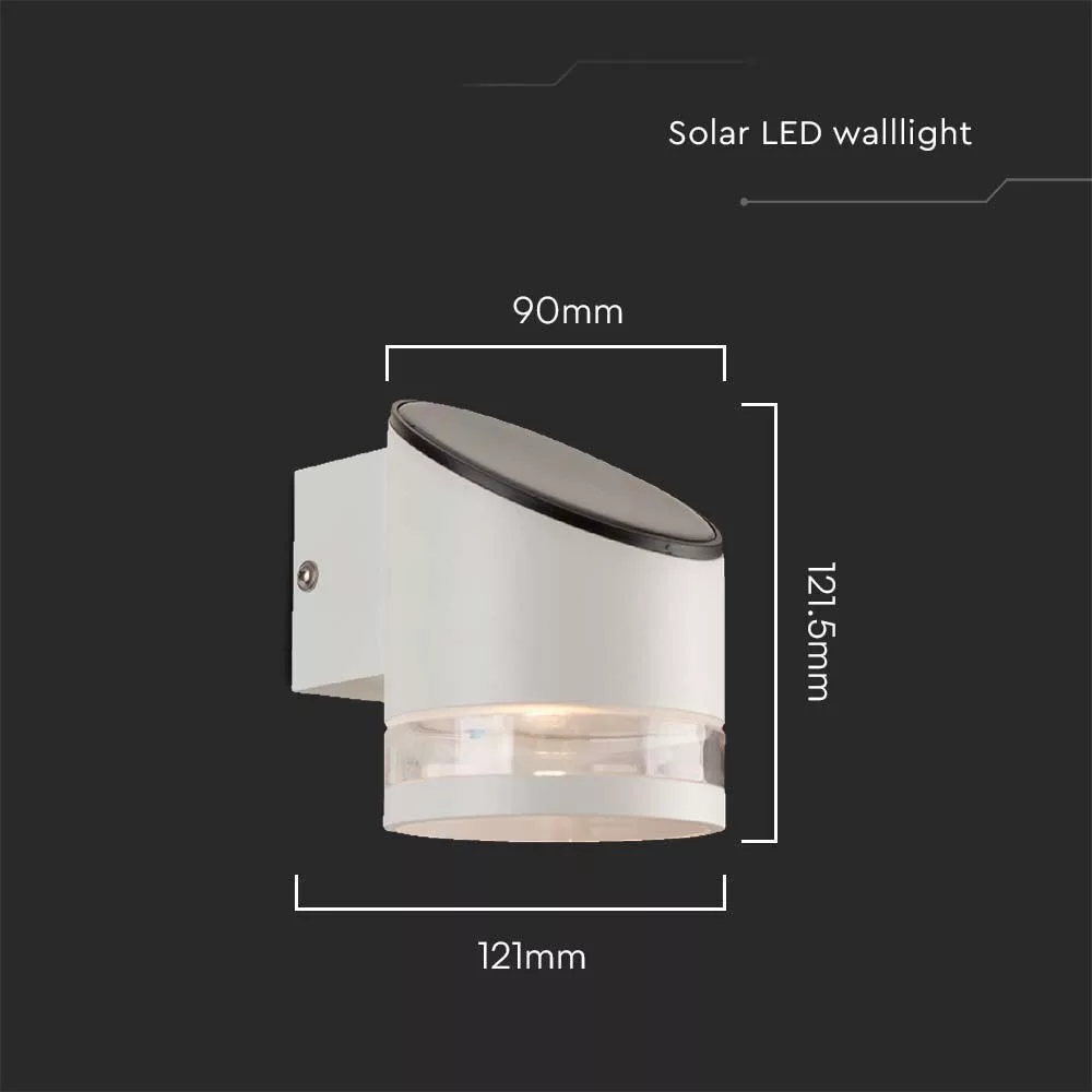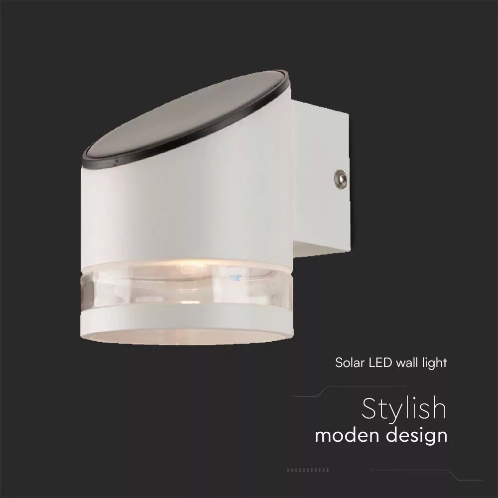 Szolár LED fali lámpatest, 3000K, meleg fehér, 70lm, fehér, IP54, V-TAC, 10395