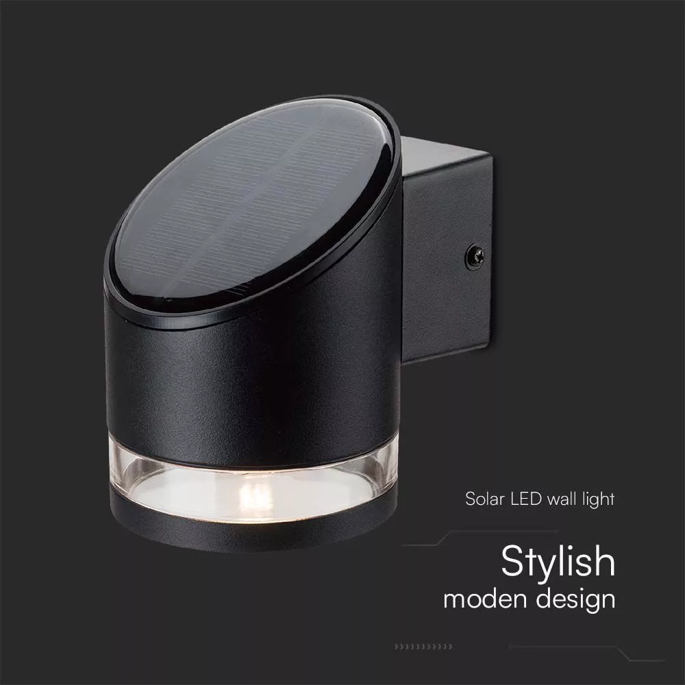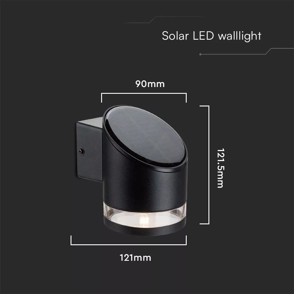 Szolár LED fali lámpatest, 3000K, meleg fehér, 70lm, fekete, IP54, V-TAC, 10384
