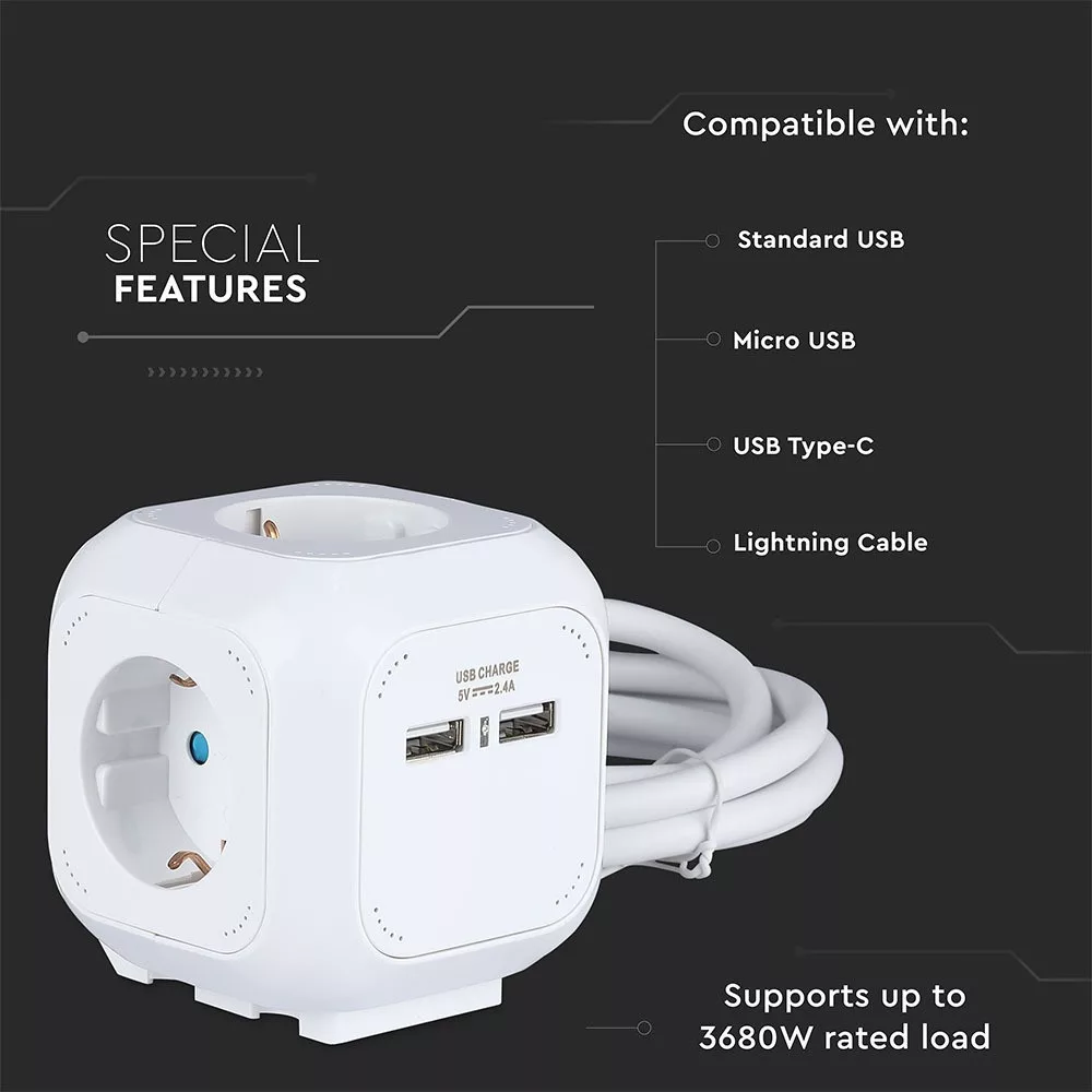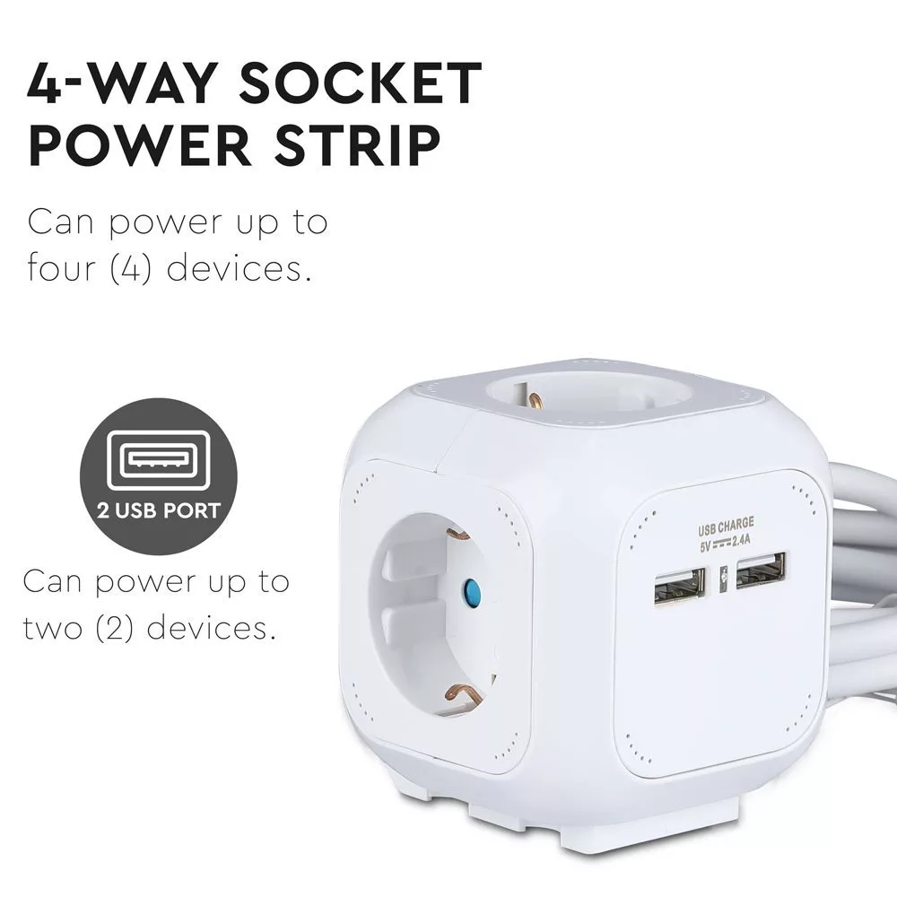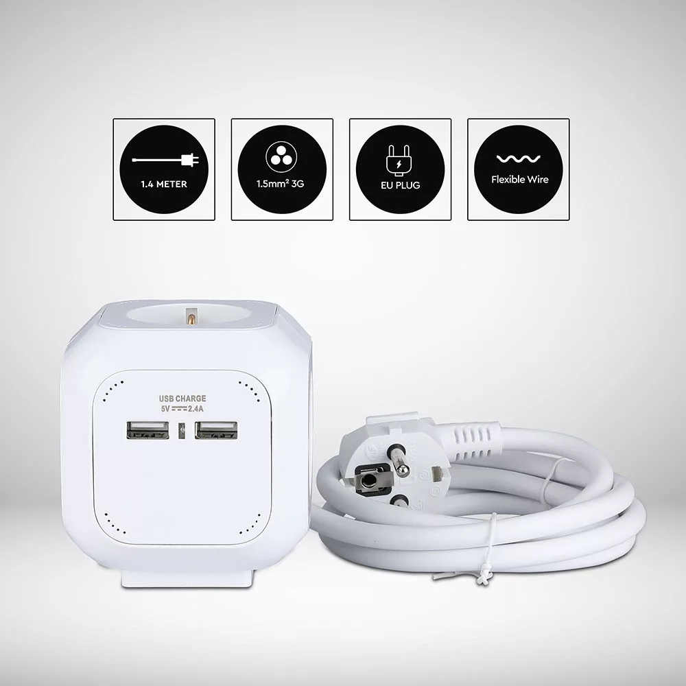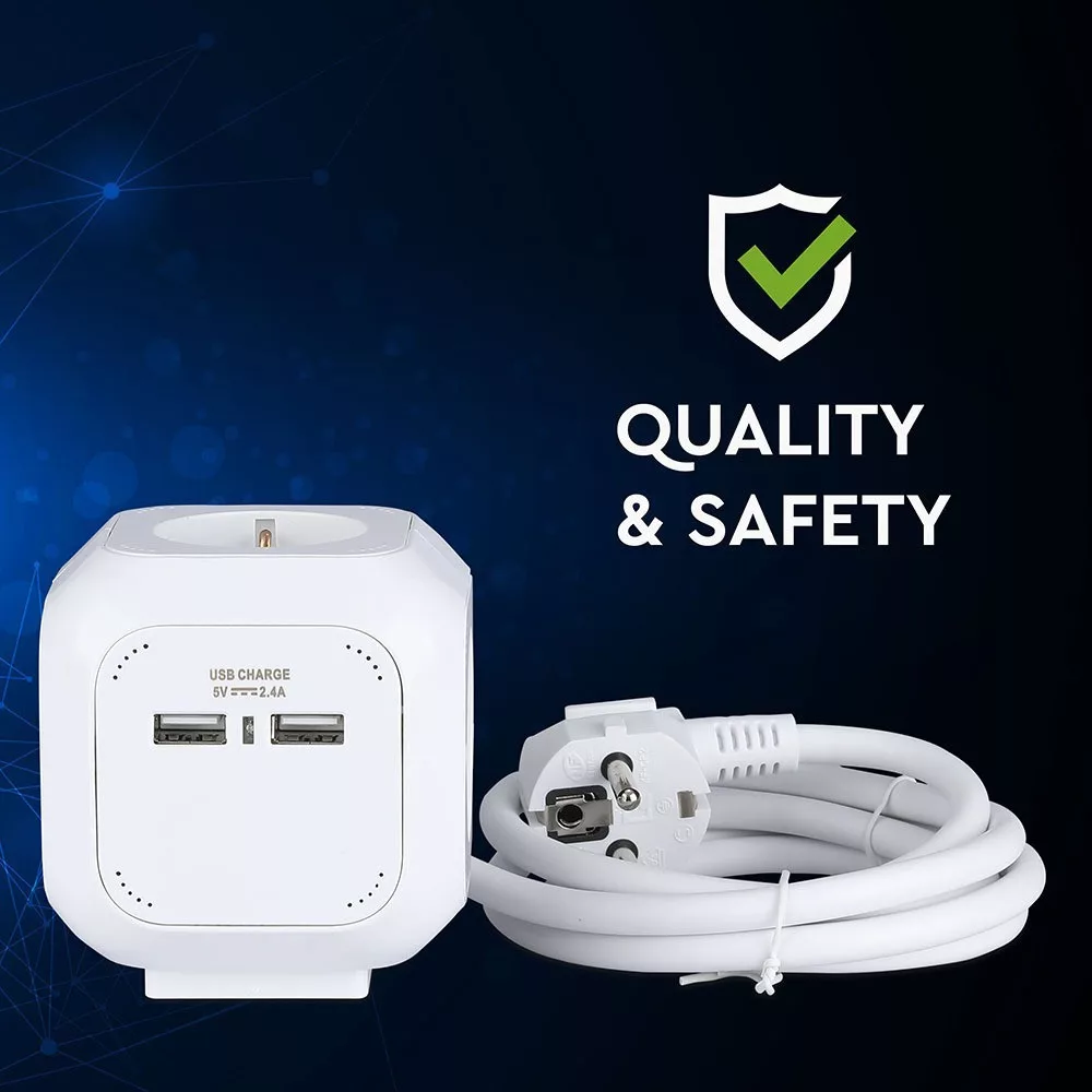 Bemutatjuk a VT-1154-2 4 pólusú USB aljzatot, amely sokoldalú és nélkülözhetetlen kiegészítője az energiaellátási megoldásainak. A kényelem jegyében tervezett elosztó több aljzattal (3G1,5MM2 x 1,4M) rendelkezik, amelyek biztosítják, hogy több eszközt is gond nélkül tölthessen egyszerre. Stílusos fehér kivitelével zökkenőmentesen integrálható bármilyen környezetbe. Főbb jellemzők: - USB kimenet: 2,4A okostelefonok és egyéb eszközök hatékony töltéséhez. - Maximális terhelés: Akár 3680 watt teljesítmény kezelésére képes, tökéletes nagy teljesítményű készülékekhez. - Kompakt kialakítás: 100 mm x 100 mm x 125 mm méretű, így ideális korlátozott helyekre. - Tartós felépítés: Kiváló minőségű PC anyagból készült, IP20 besorolással, amely hosszú élettartamot és biztonságot biztosít. - Energiatakarékos: Az energiafogyasztást csökkentő funkciókkal rendelkezik, így környezetbarát választás. A VT-1154-2 tökéletes otthoni, irodai vagy utazási használatra, megbízható teljesítményre és könnyű használatra tervezve. Frissítse energiagazdálkodását még ma ezzel az innovatív aljzattal.