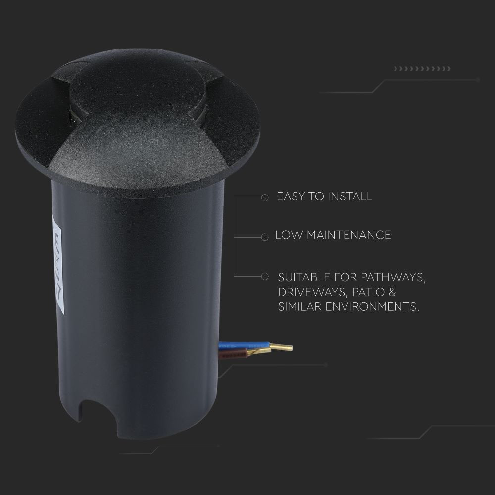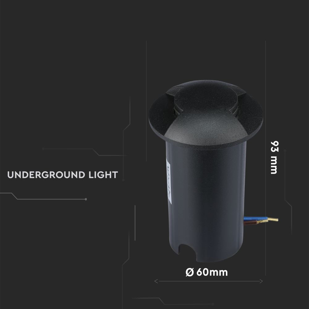 Kültéri talajba lámpa, 1w, 6500K, hideg fehér, 10lm, 90°, fekete, CRI>80, IP67, V-TAC, 1468