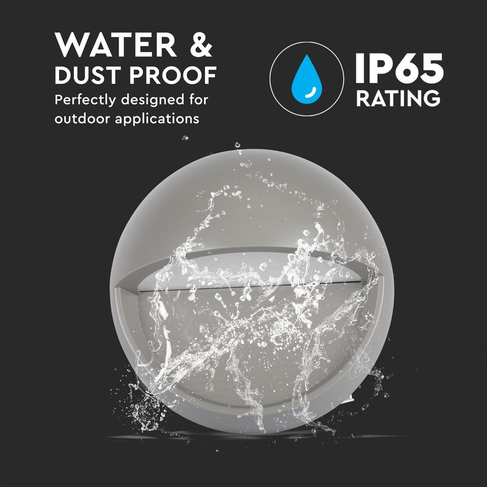 LED fali lámpa lépcsővilágító kerek, 3w, 3000K, meleg fehér, 210lm, 90°, szürke, CRI>80, IP65, V-TAC, 1406