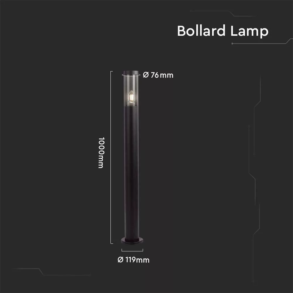Bemutatjuk a VT-1185 Bollard kerti lámpatestet, egy sokoldalú kültéri világítási megoldást, amelyet kertje vagy ösvénye díszítésére terveztek. 76 mm széles, 119 mm hosszú és 1000 mm magas méreteivel ez a letisztult lámpatest az esztétikus megjelenést a tartóssággal ötvözi. A füstszínű műanyag és rozsdamentes acél kombinációjából készült fekete test nemcsak a különféle kültéri környezetekhez illik, hanem IP44-es besorolással is rendelkezik, amely védelmet nyújt a fröccsenő víz és a por ellen. Az E27-es foglalatnak köszönhetően a VT-1185 számos izzóval kompatibilis, így a világítási igényeknek megfelelően testreszabható. Névleges bemeneti teljesítménye AC 220-240V, 50Hz, maximális terhelése 18 watt méterenként, így biztosítva a hatékony energiafelhasználást. A hosszú élettartamra tervezett lámpatest számos telepítési típust támogat, így különböző kertészeti elrendezésekhez is adaptálható. A 2 éves garanciával rendelkező VT-1185 stílusos kialakításával és funkcionalitásával a nyugalmat biztosítja. Ideális kerti ösvények, kocsifelhajtók és kültéri terek megvilágítására, ez a terelőlámpa megbízható választás a kültéri esztétika és biztonság fokozására.