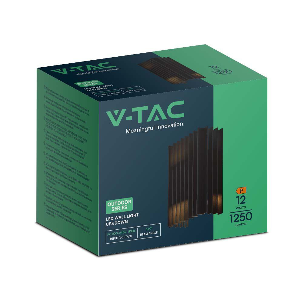 Kültéri LED fali lámpa kétiriányú, 12w, 4000K, természetes fehér, 1250lm, 340°, fekete, CRI>80, IP65, V-TAC, 10560