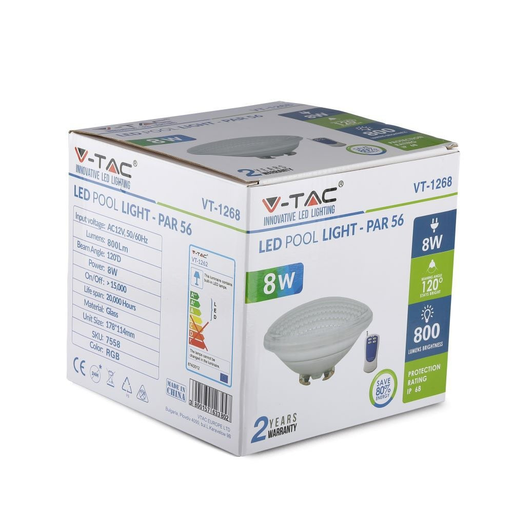 VT-1268 8W IP68 Medence Világítás RGB Távirányítóval Par56