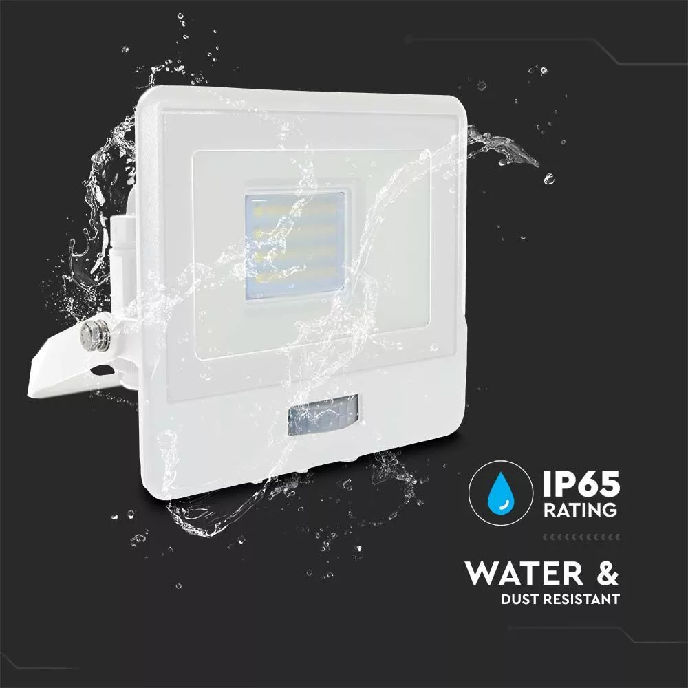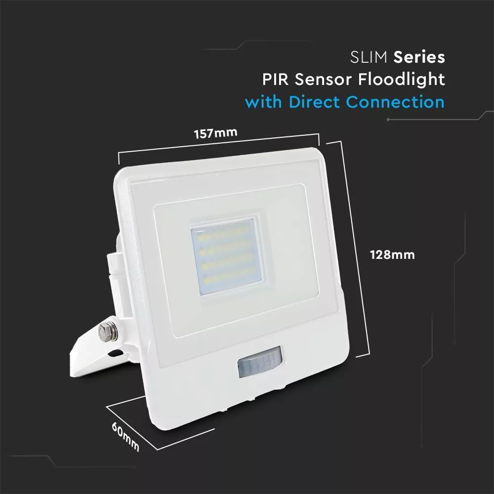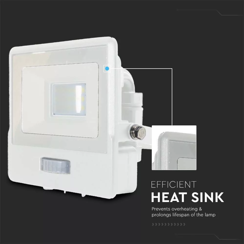 LED reflektor PIR érzékelős PRO, 20w, 3000K, meleg fehér, 1510lm, 100°, fehér, CRI>80, IP65, V-TAC, 20271